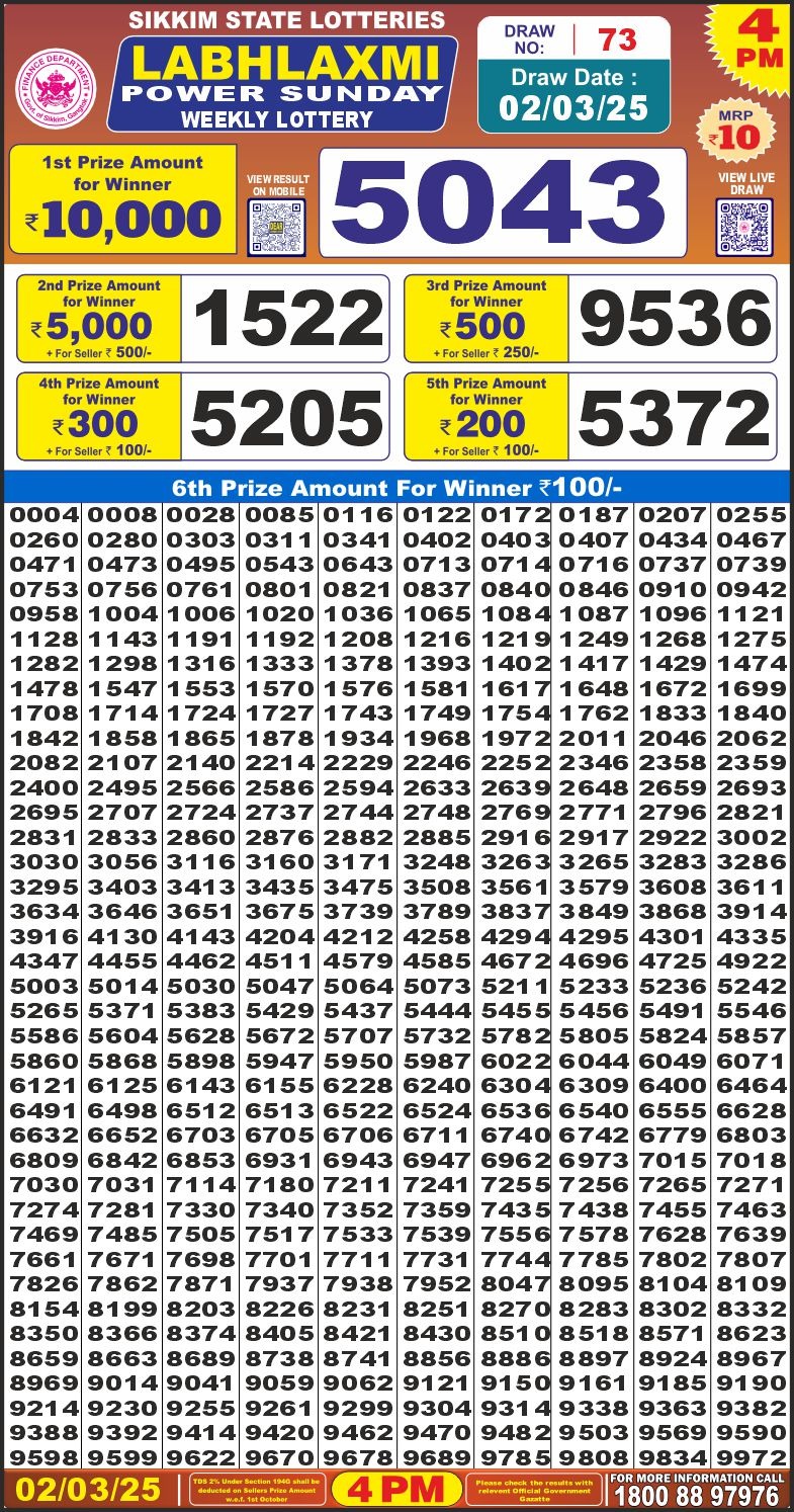 LabhLaxmi power weekly 4PM Result 2.3.25