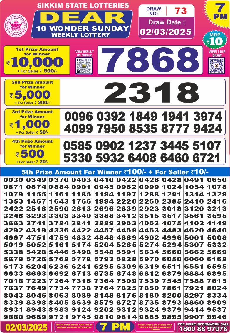 Dear 10 violet lottery 1.30PM Result 2.3.25