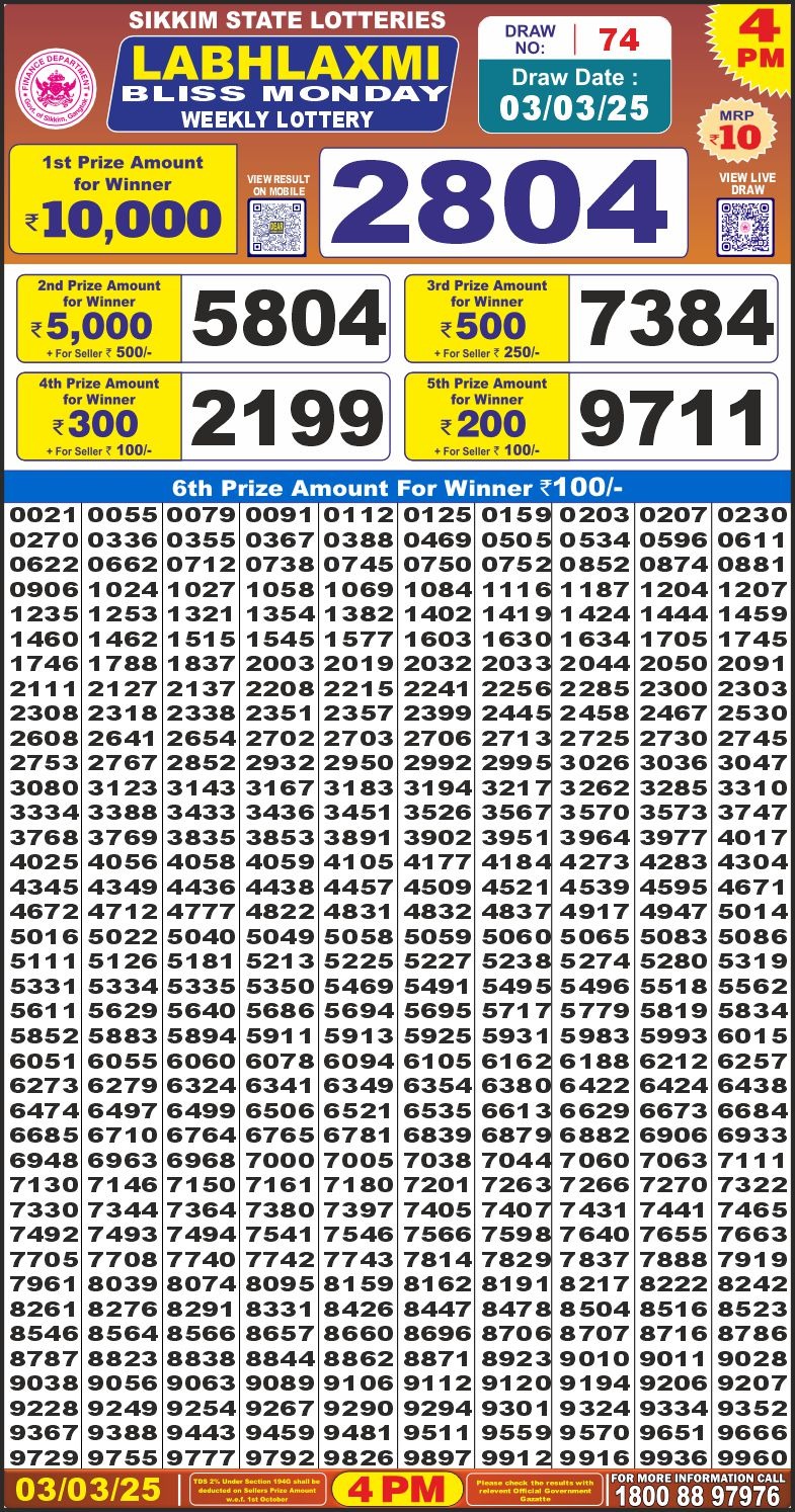 LabhLaxmi bliss weekly 4PM Result 3.3.25