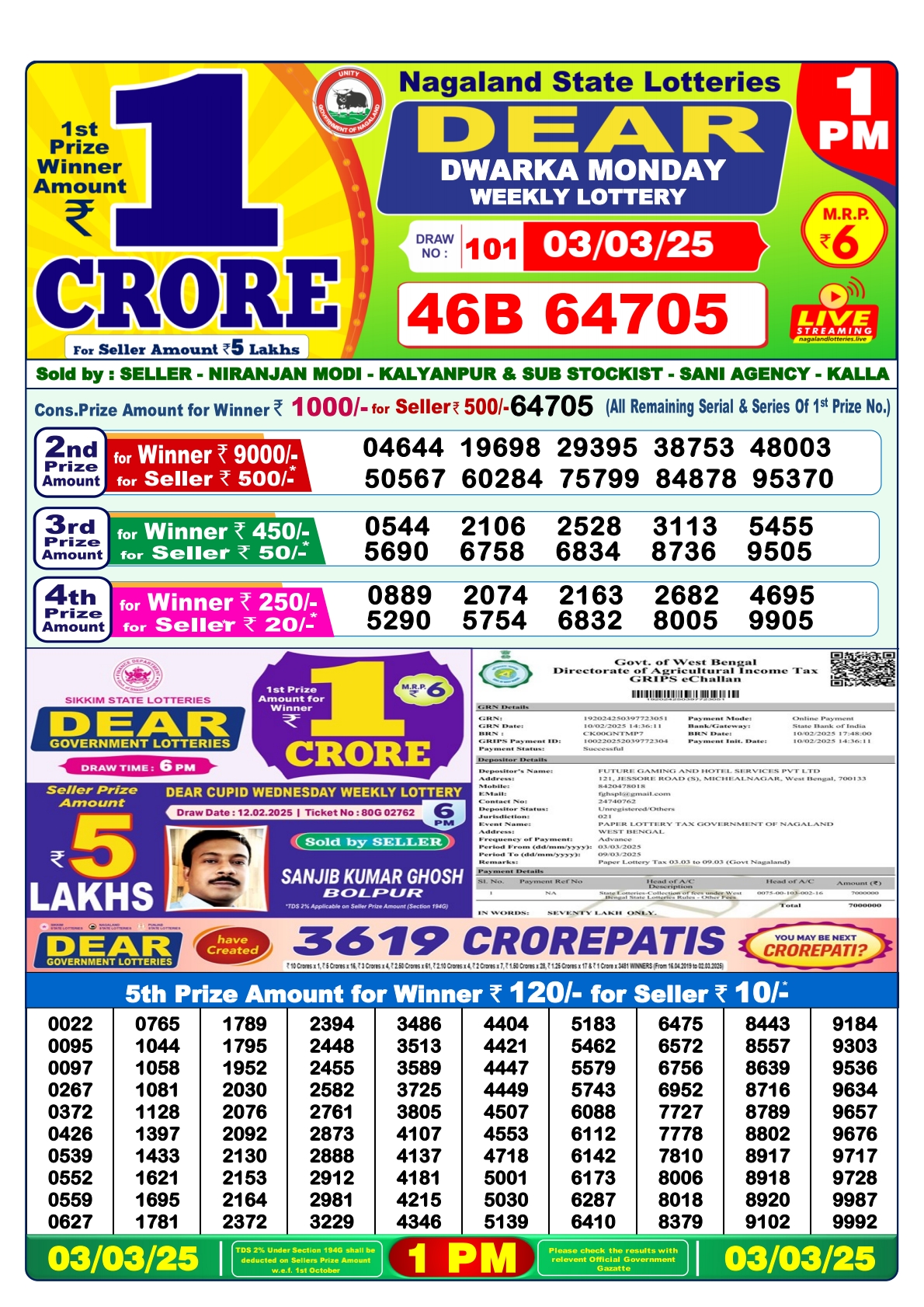 Dear blitzen monday weekly 6PM Result 3.3.25
