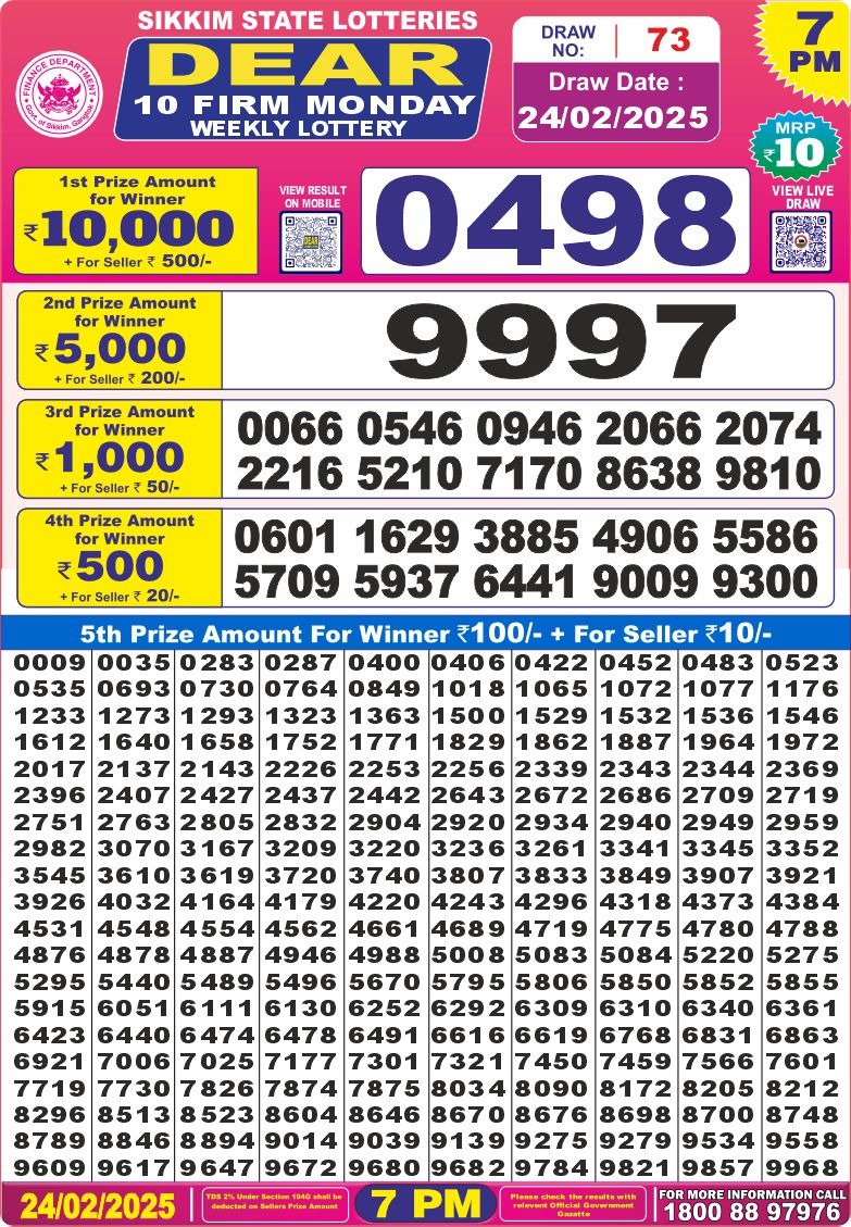 Punjab state dear 10 6pm lottery result 24.2.25