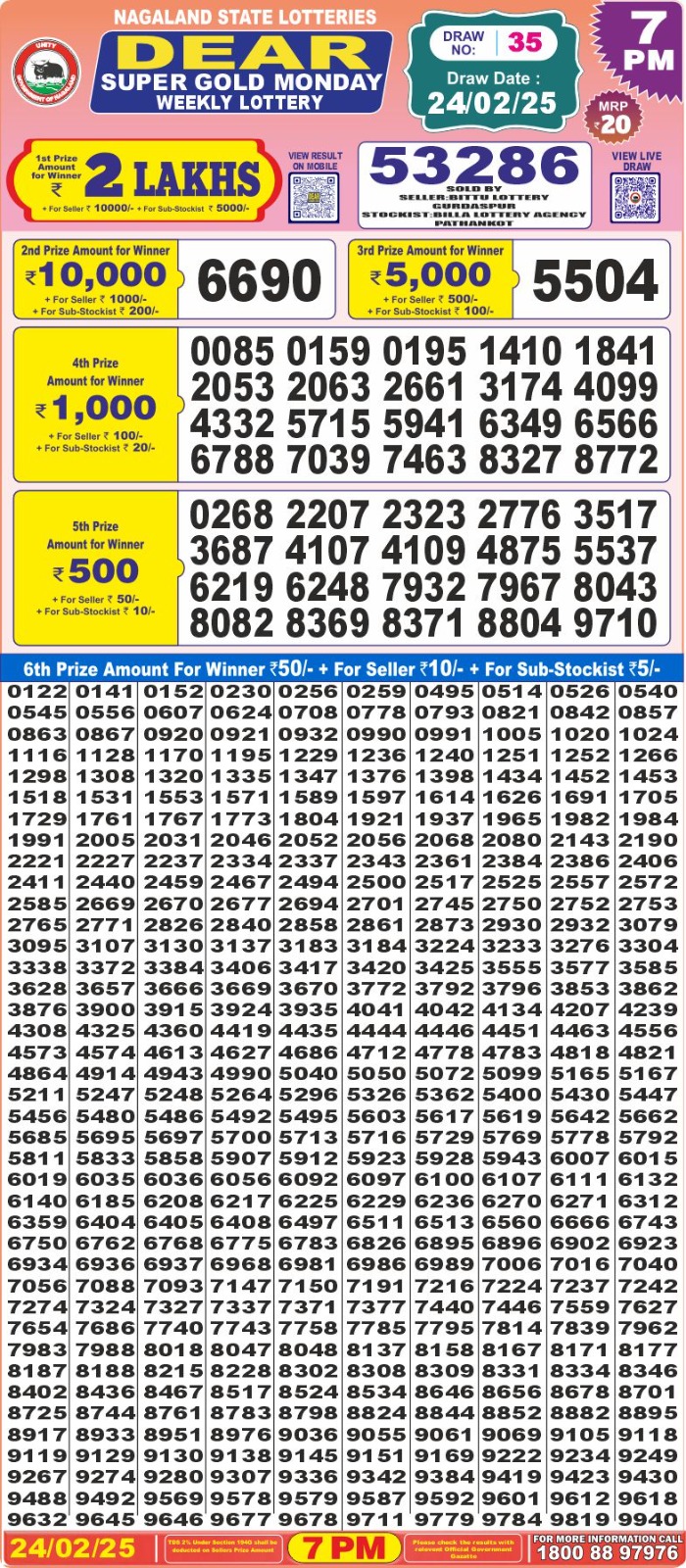 Dear Super Gold Monday 7pm result 24.2.25