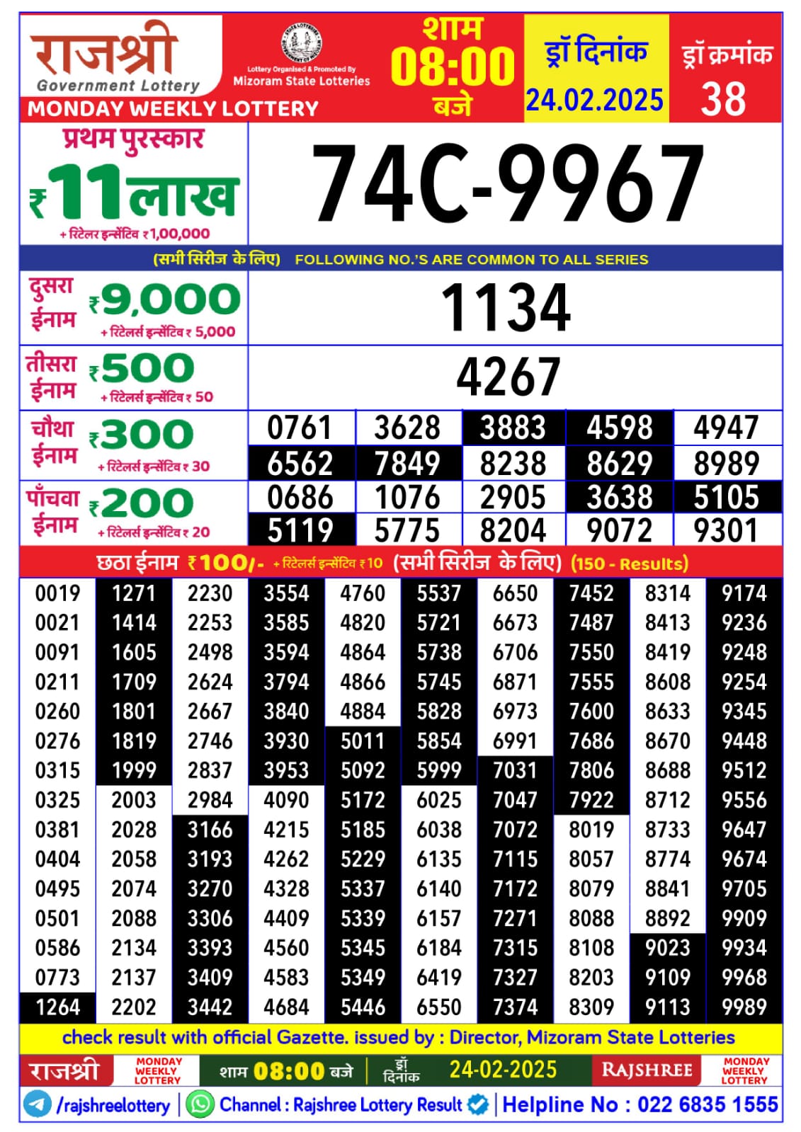 Rajshree 10 evening monday 5:40pm result 24.2.25
