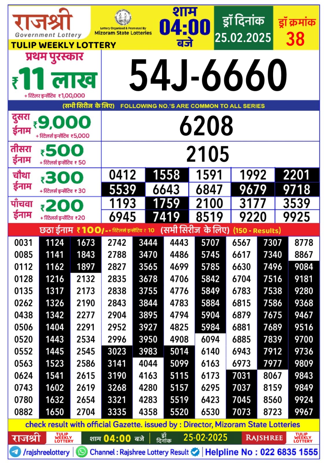 Rajshree tulip Tuesday Weekly Lottery 4PM Result 25.2.25