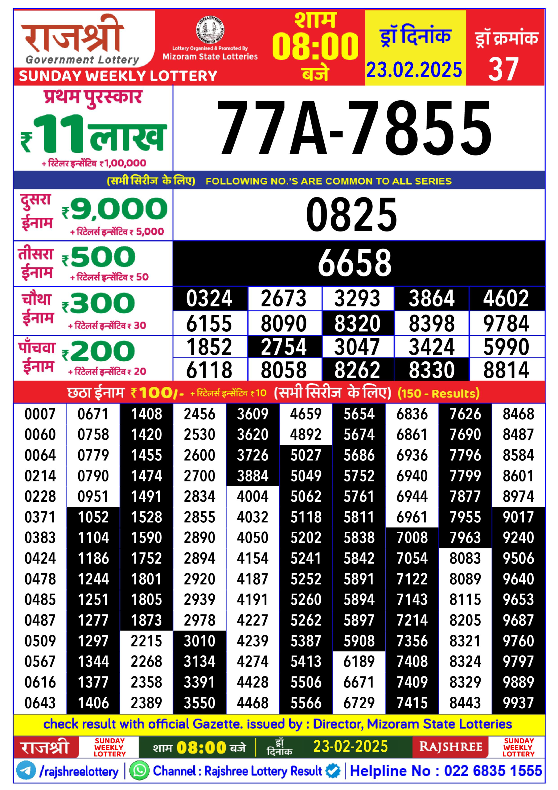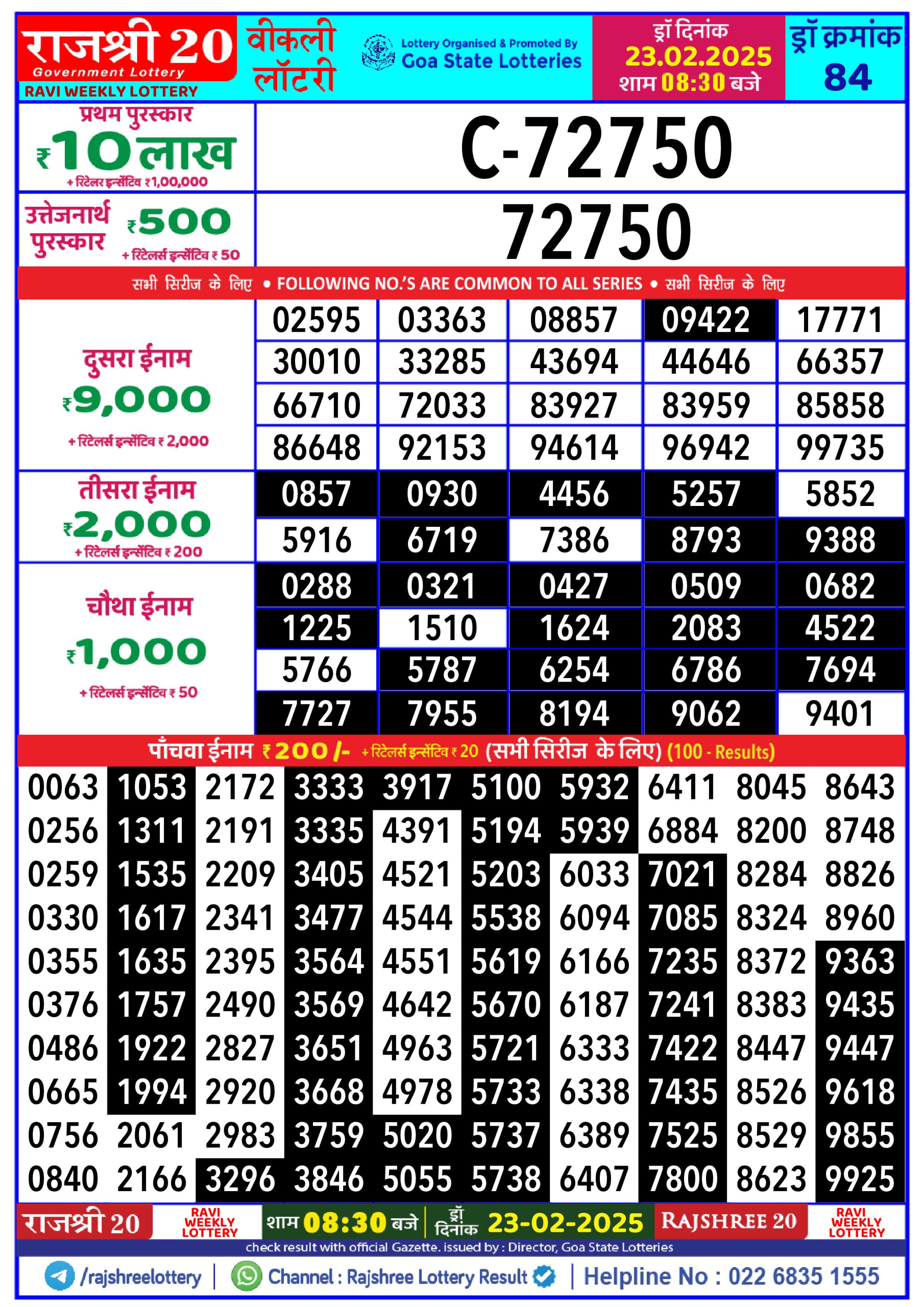 Rajshree Weekly Lottery 8PM Result 23.2.25