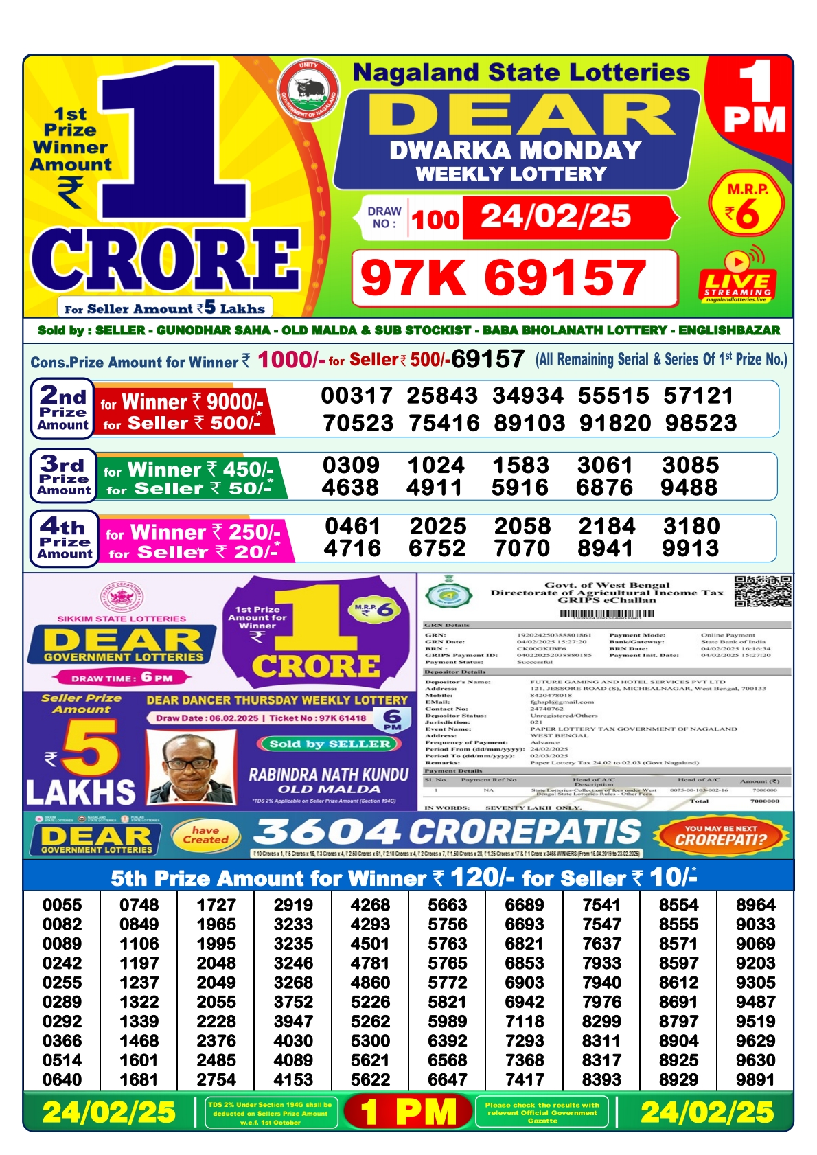 Dear blitzen monday weekly 6PM Result 24.2.25