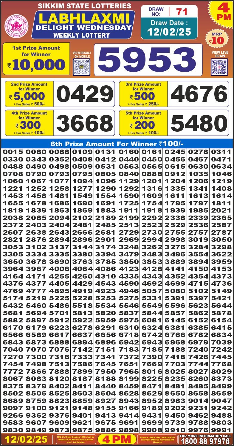 LabhLaxmi Delight weekly 4PM Result 12.2.25