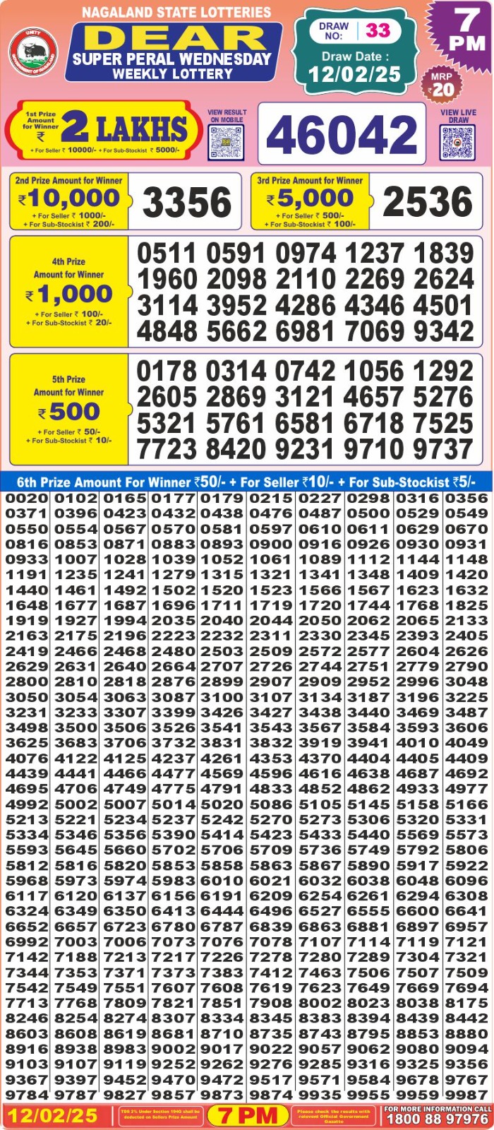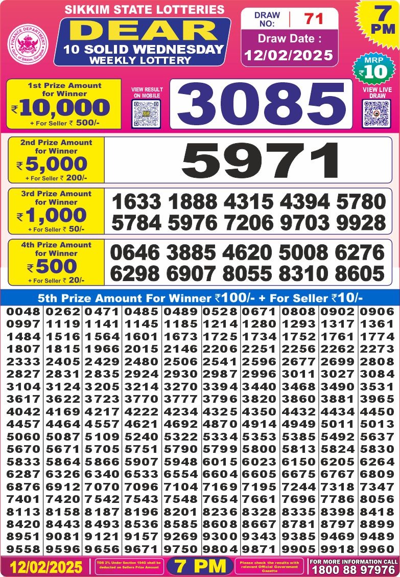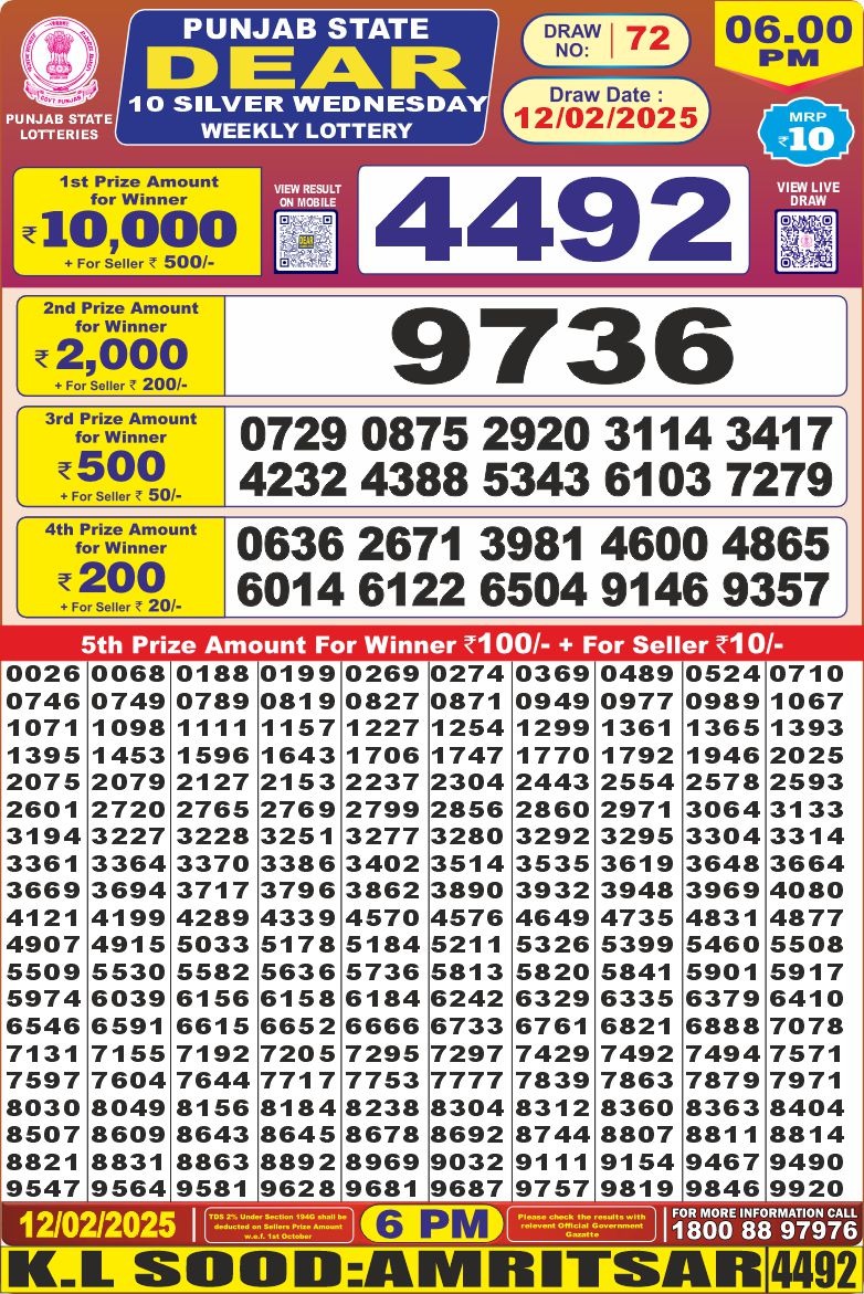Dear 50 Chenab Wednesday Lottery 12.2.25