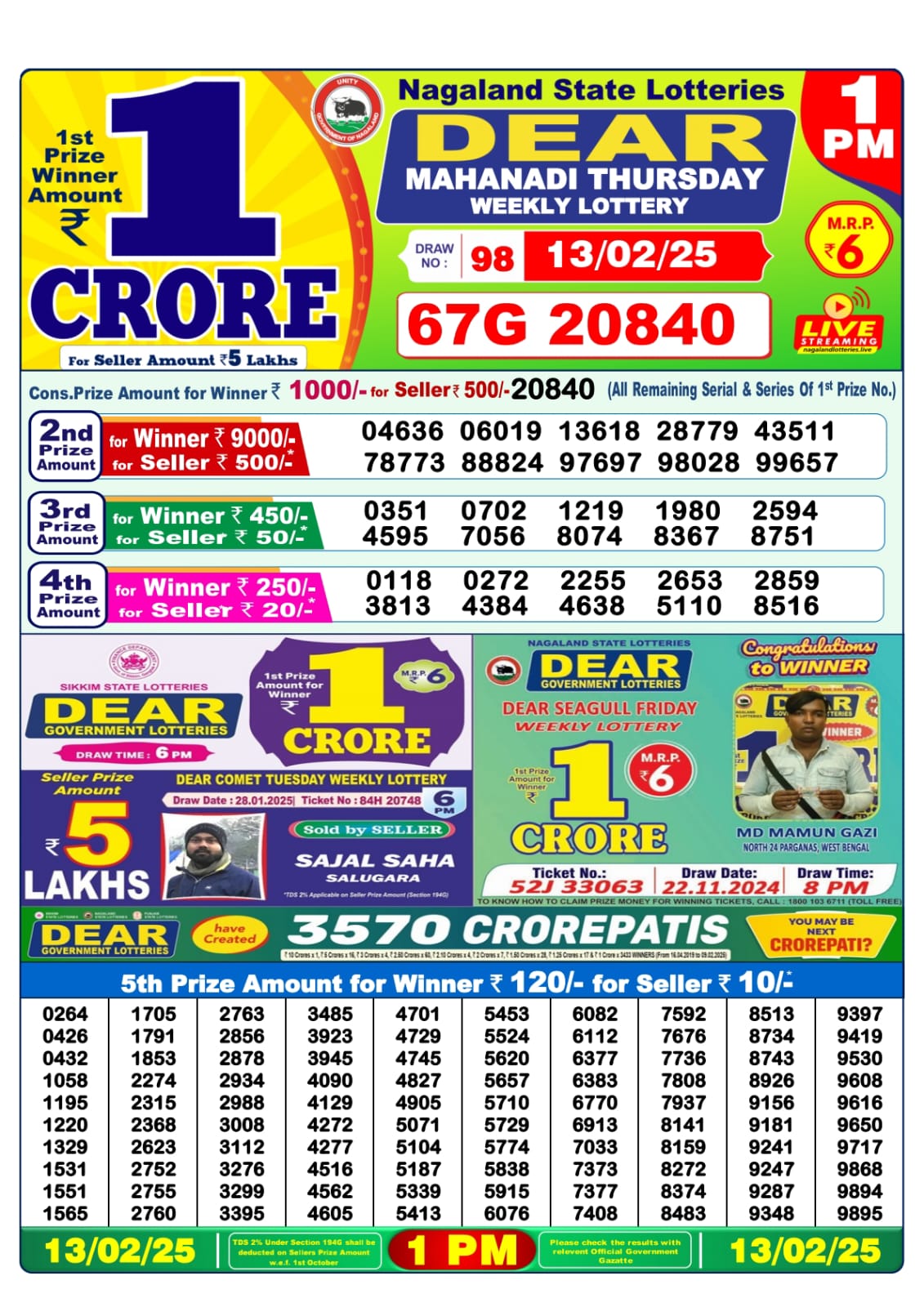 Dear Mahanadi Thursday Weekly 1pm result 13.2.25