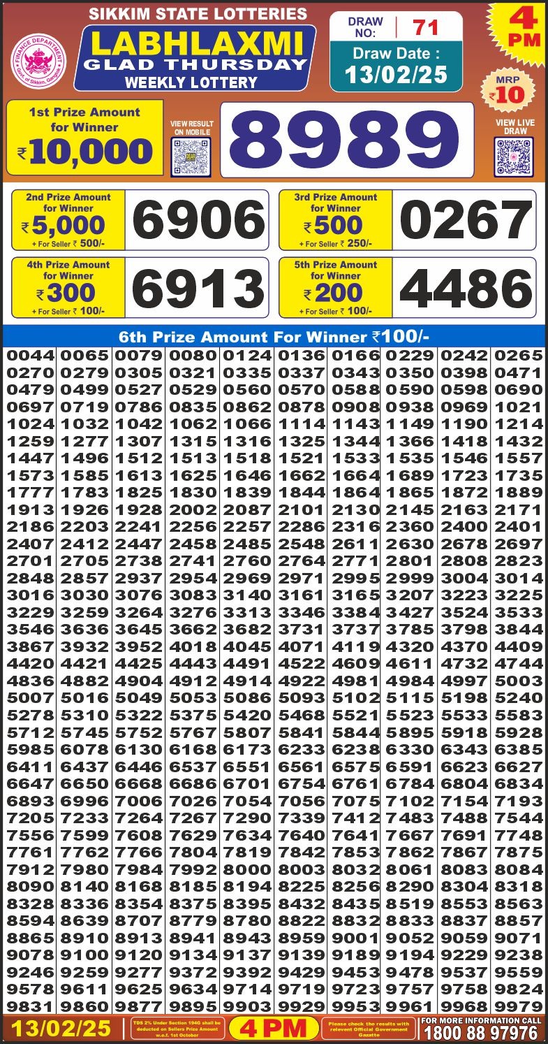 Labh Laxmi Glad weekly 4PM Result 13.2.25