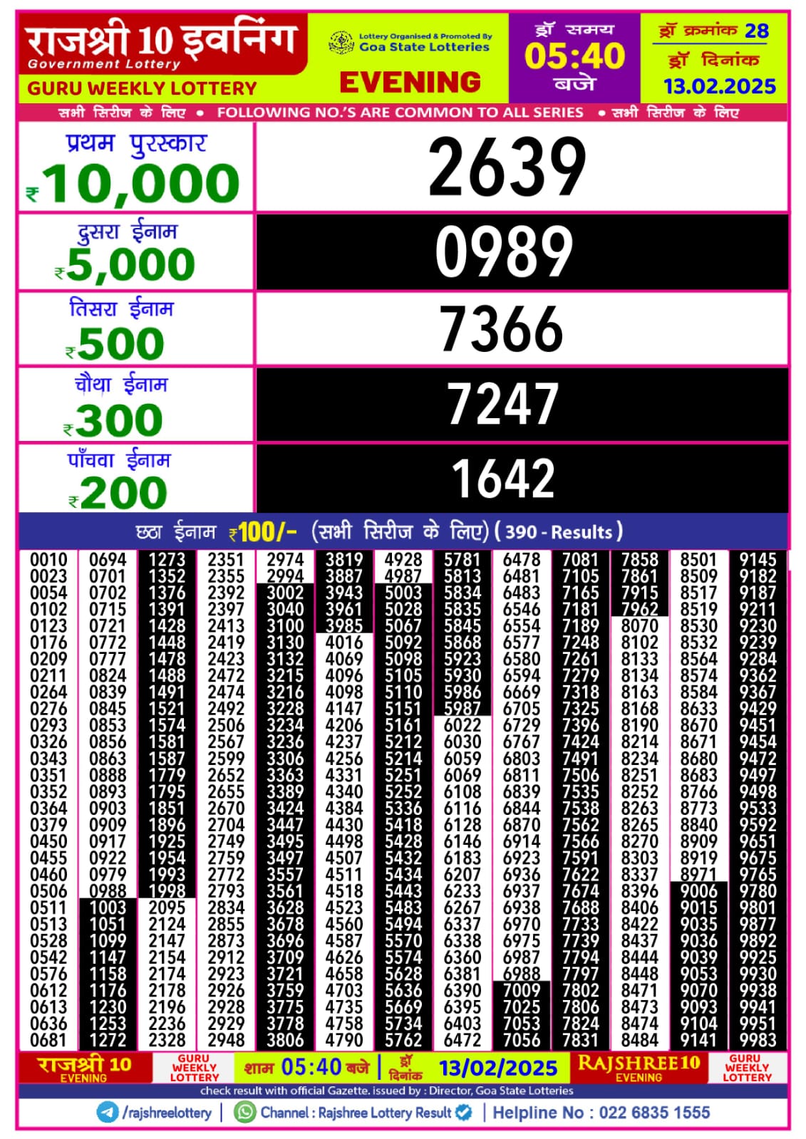 Rajshree 10 evening Thursday 5:40pm result 13.2.25