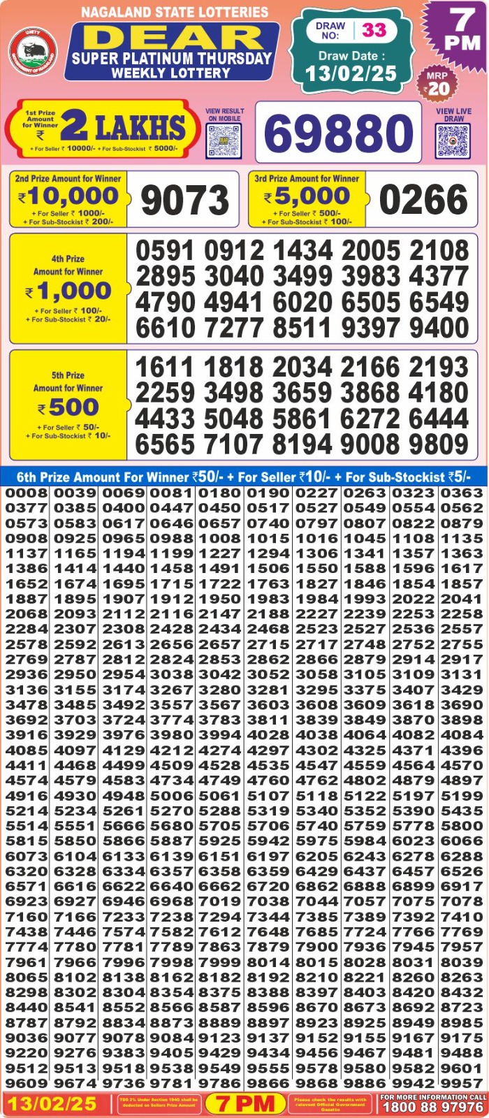 Rajshree Thursday Weekly Lottery 8PM Result 13.2.25