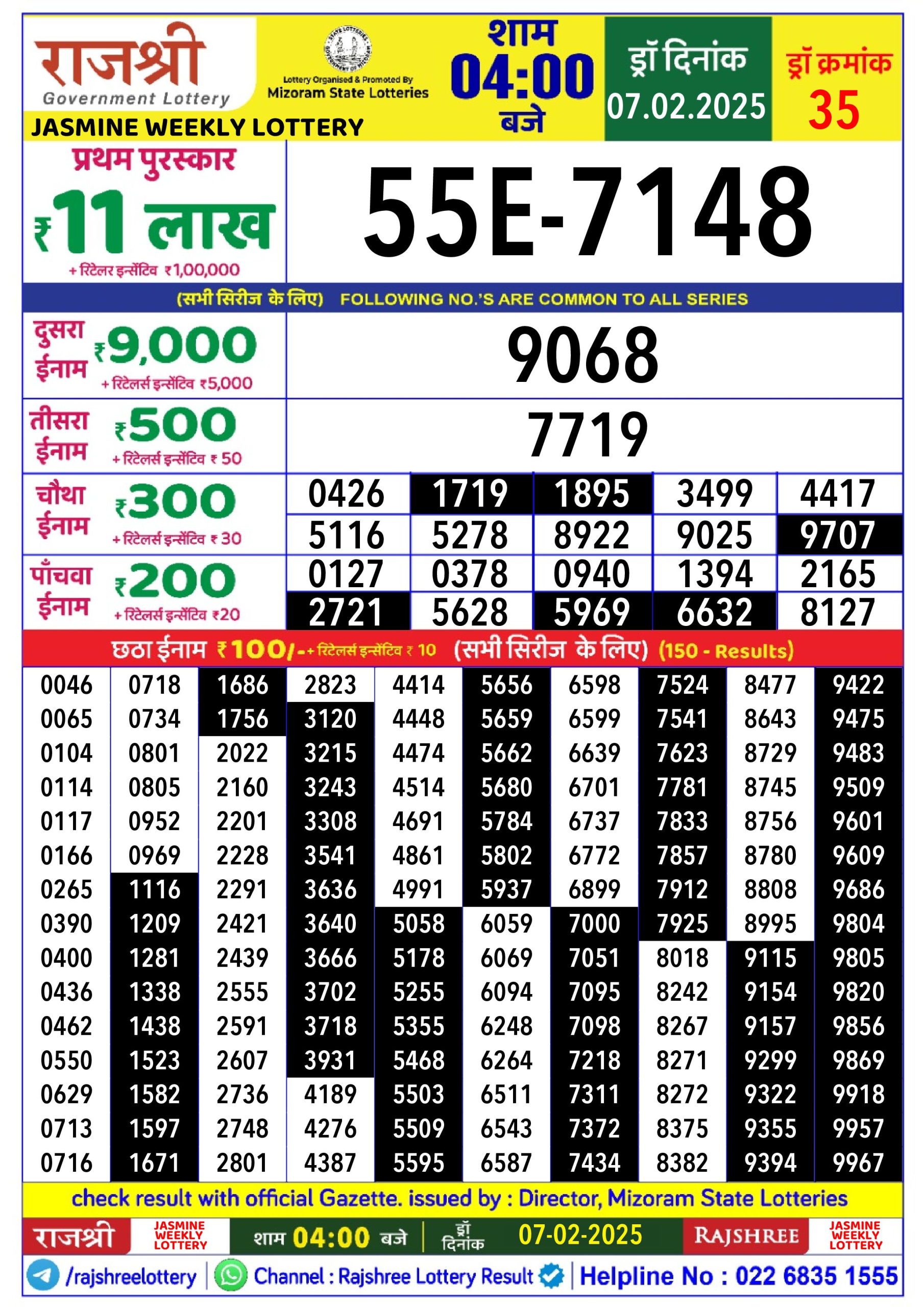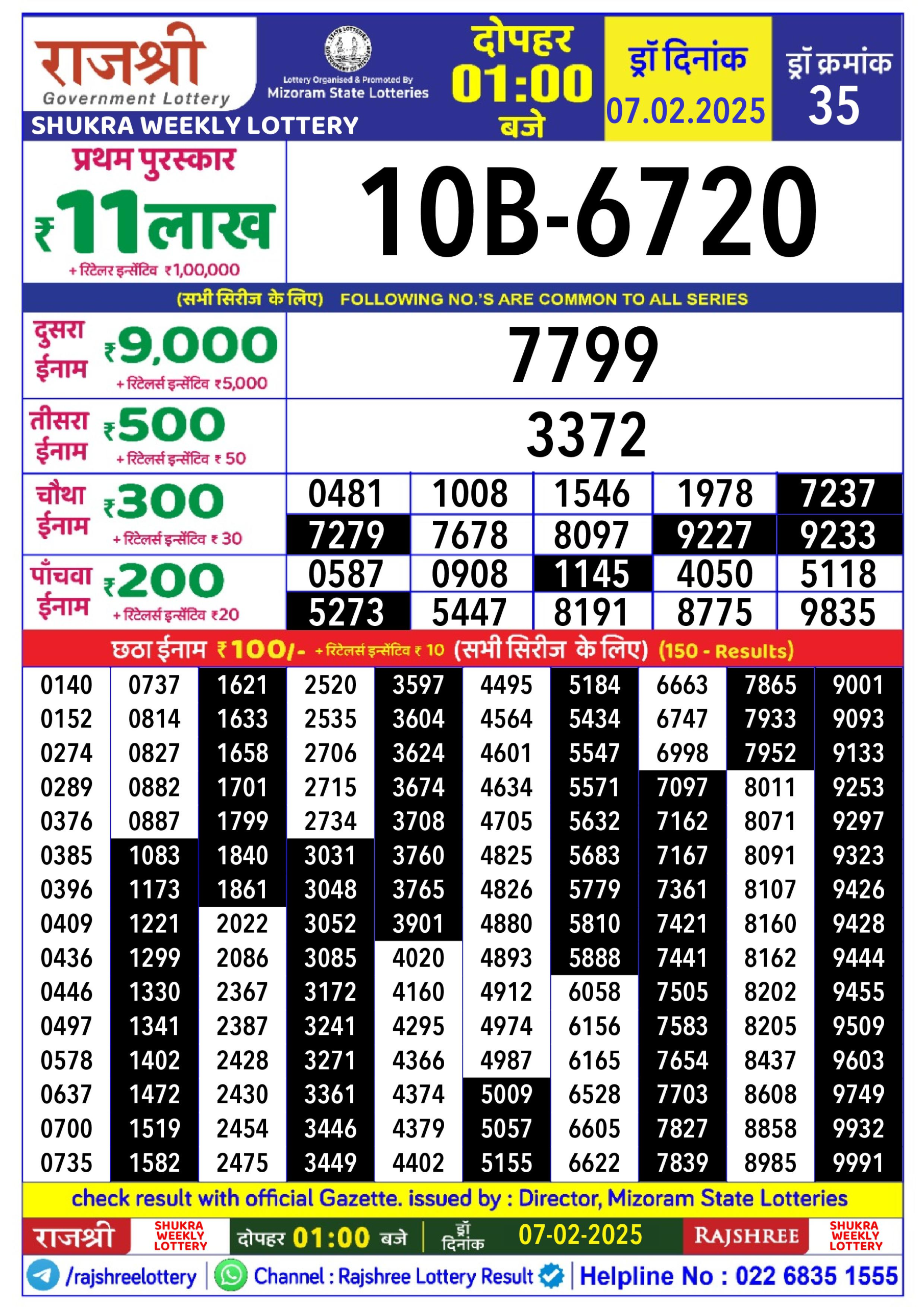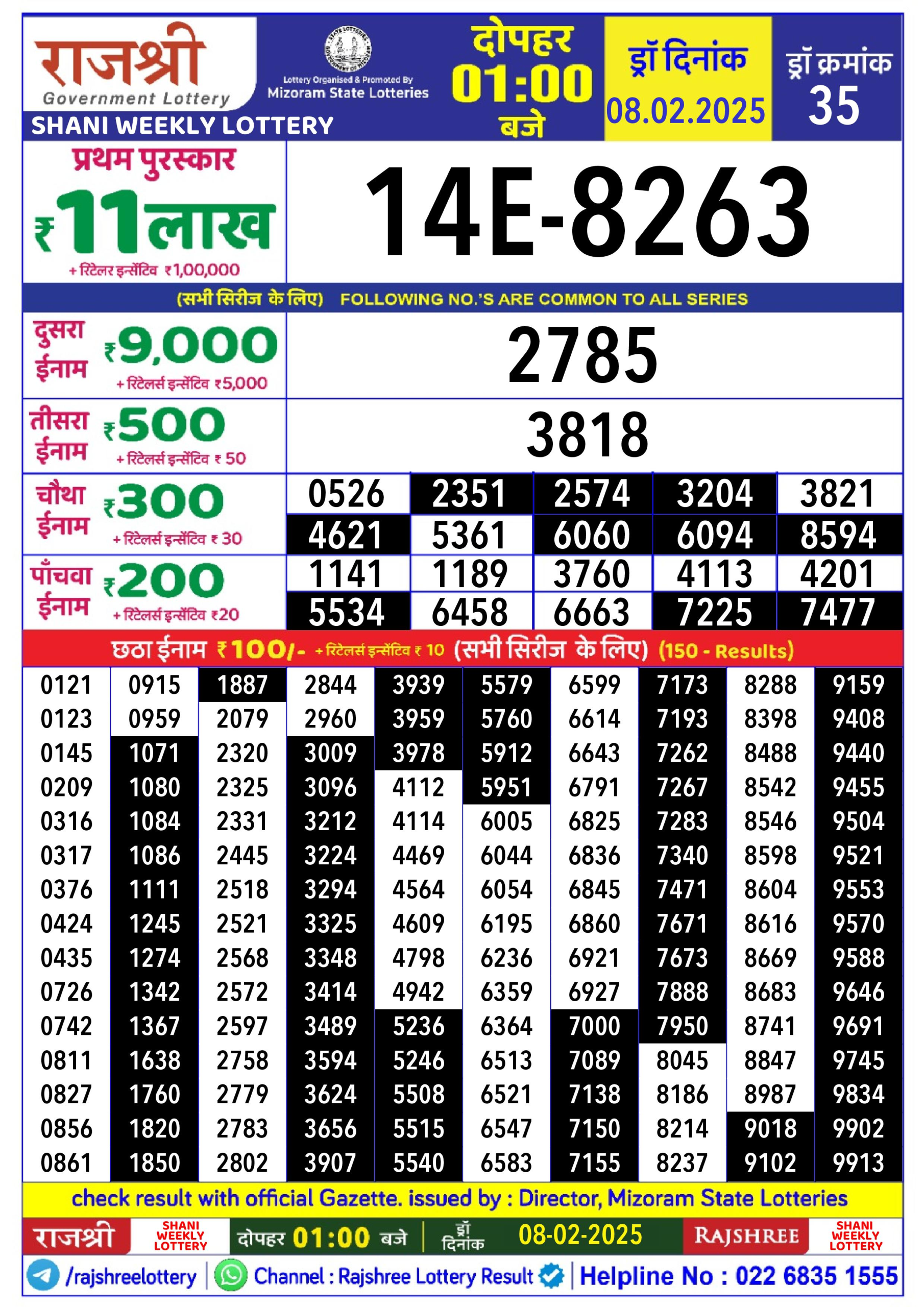 Daily Dear Lottery 1PM”>Rajshree Lottery