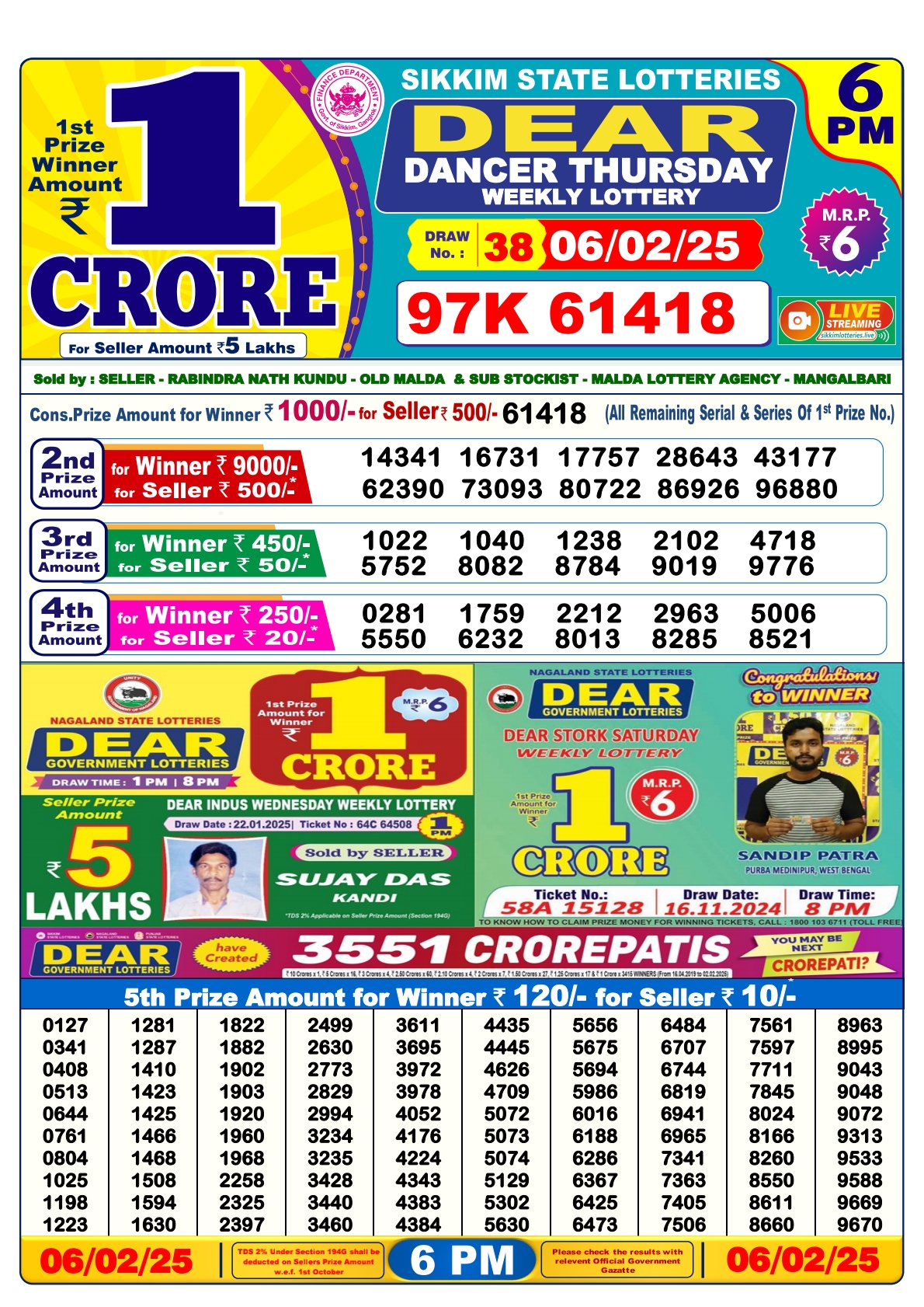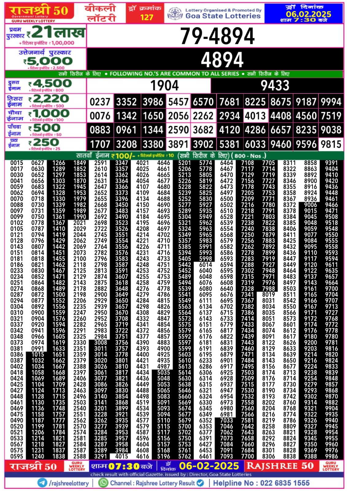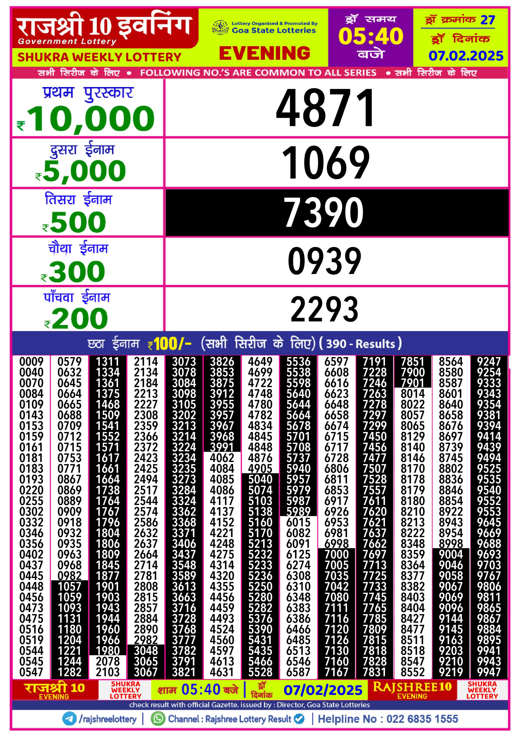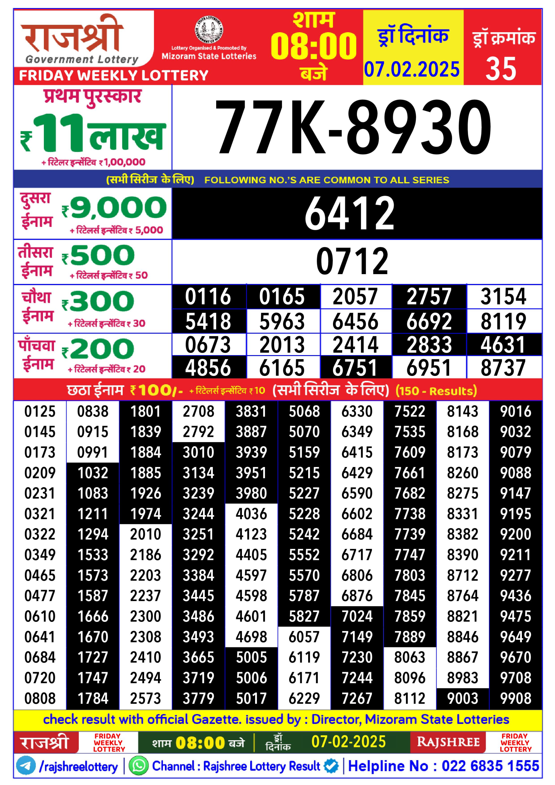 Daily Dear Lottery 1PM”>Rajshree Lottery