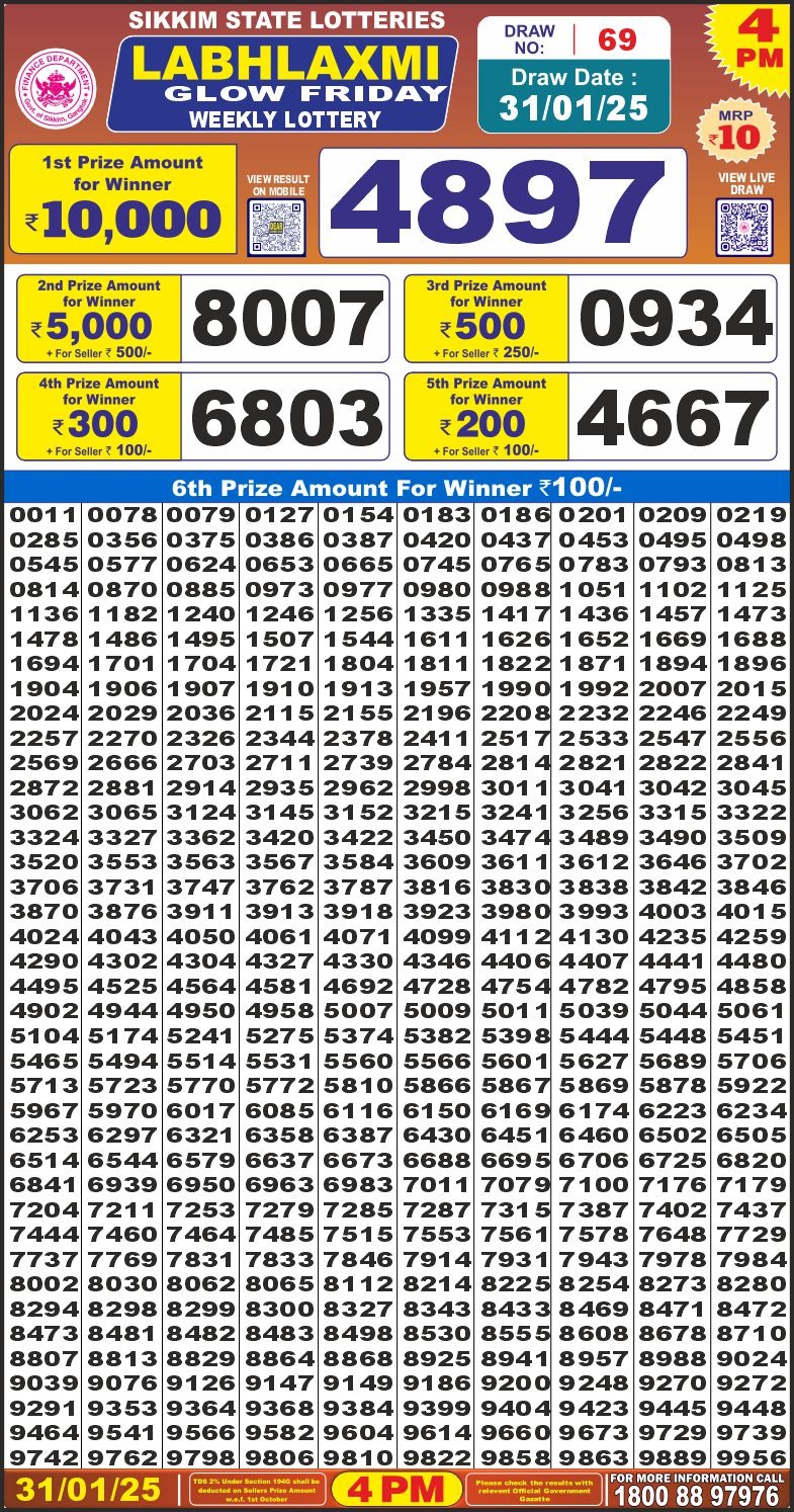 Labh Laxmi Glad weekly 4PM Result 30.1.25