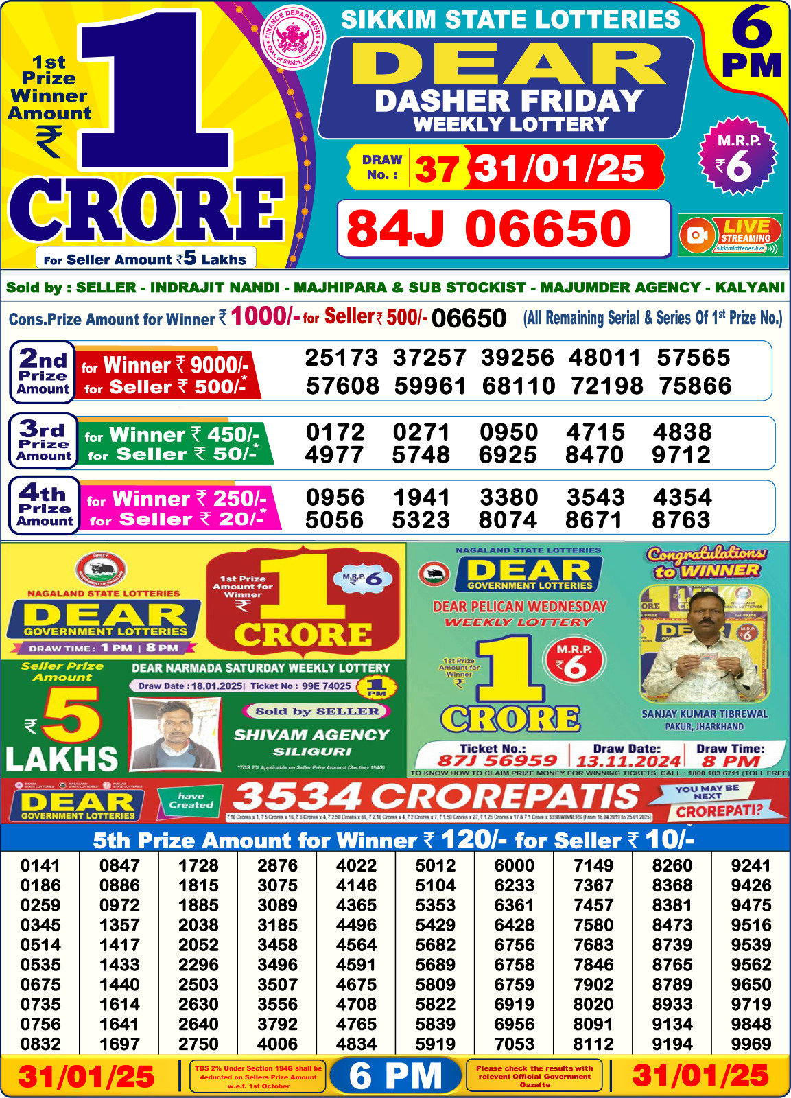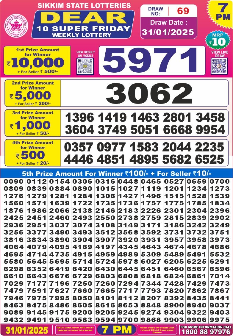 Punjab state dear 10 6pm lottery result 31.1.2025