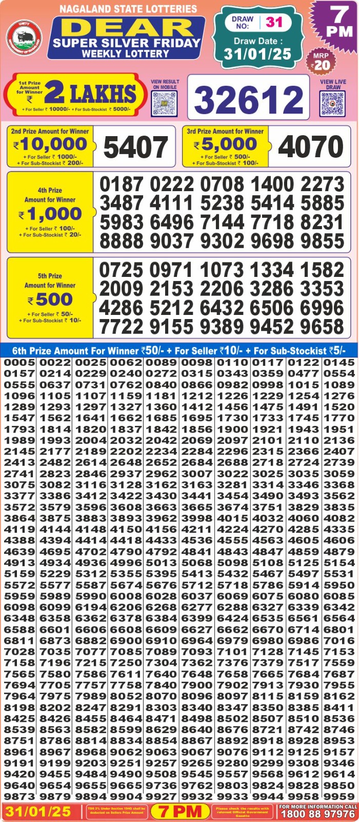 Dear dasher Friday weekly 6PM Result 31.1.2025