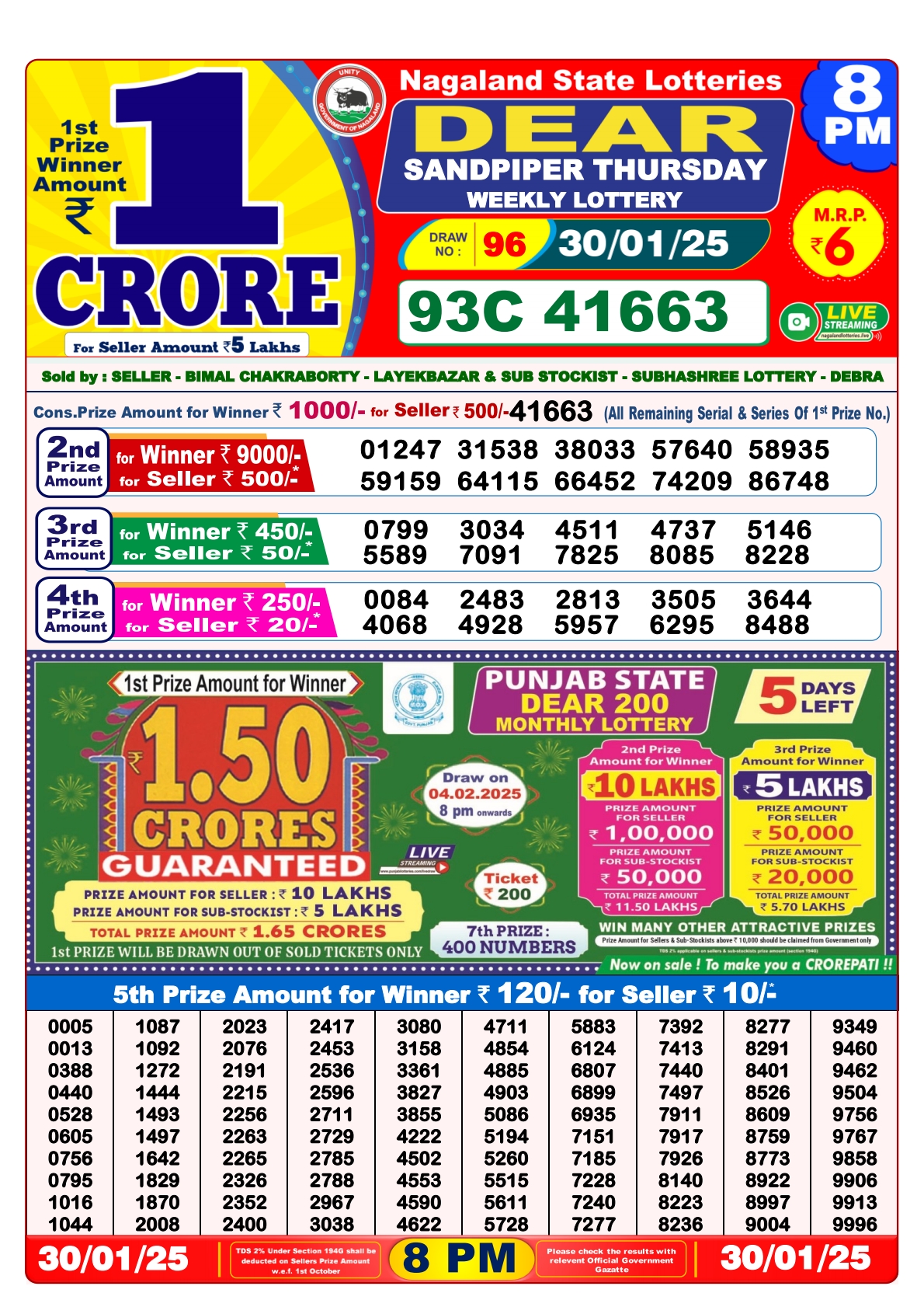 Dear Sandpiper Thursday Weekly Lottery 8PM Result 30.1.25