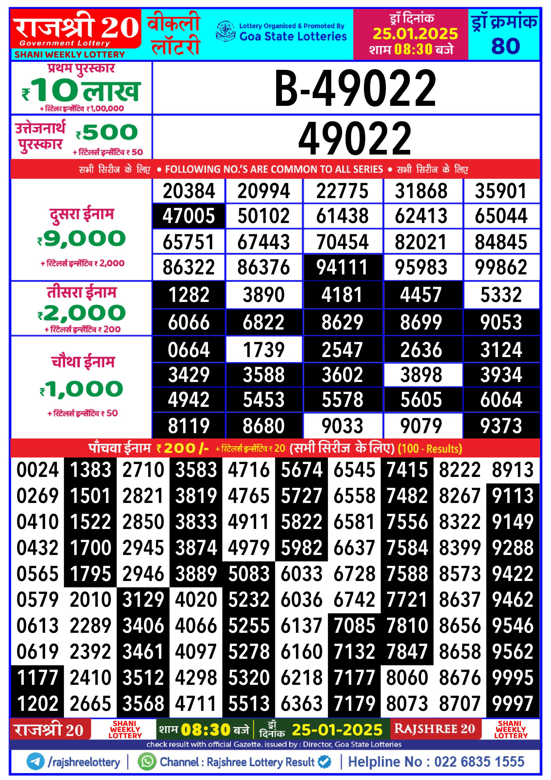 Daily Dear Lottery 1PM”>Rajshree Lottery