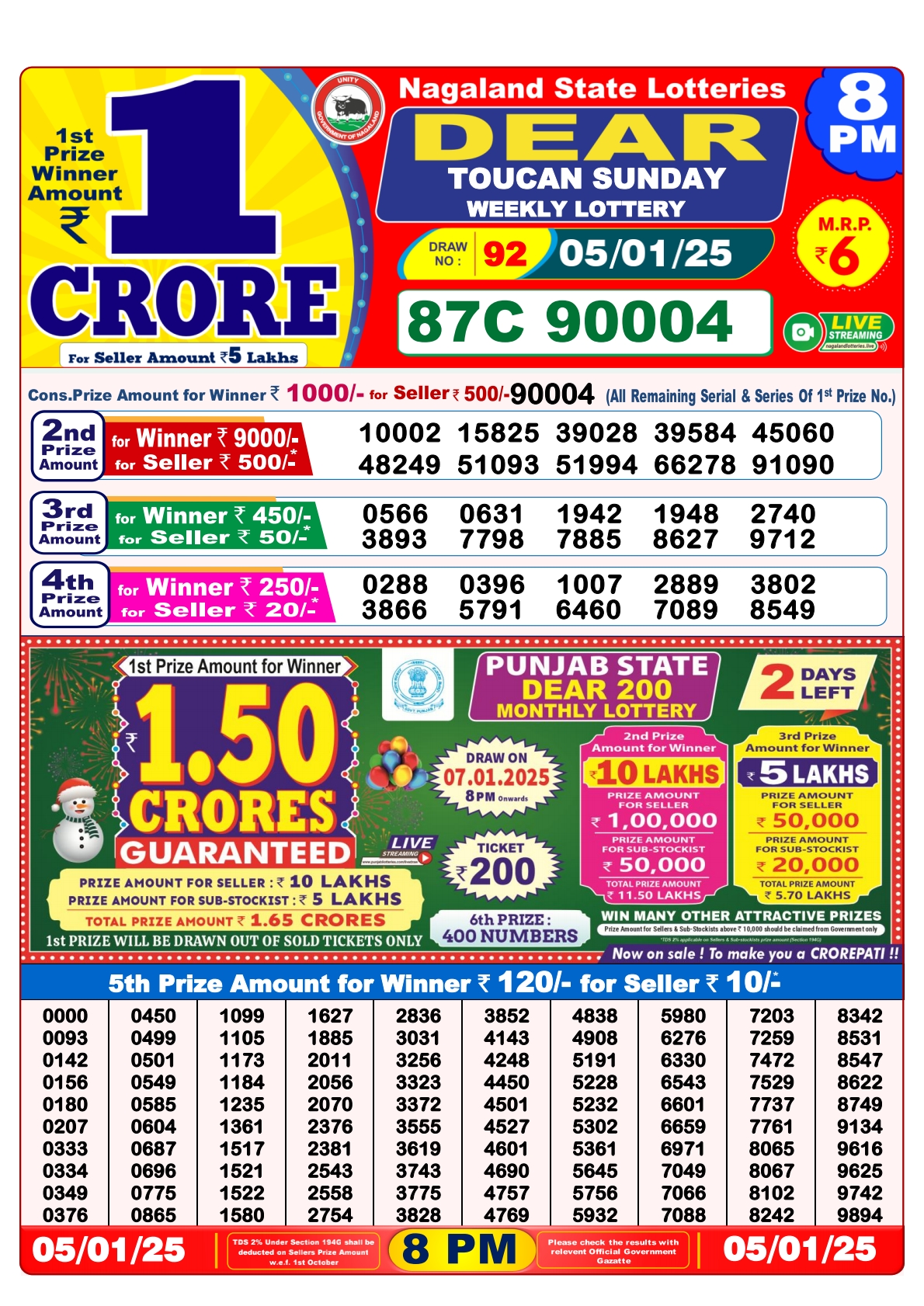 • Punjab State Dear 50 6pm Lottery Result 10.11.2025