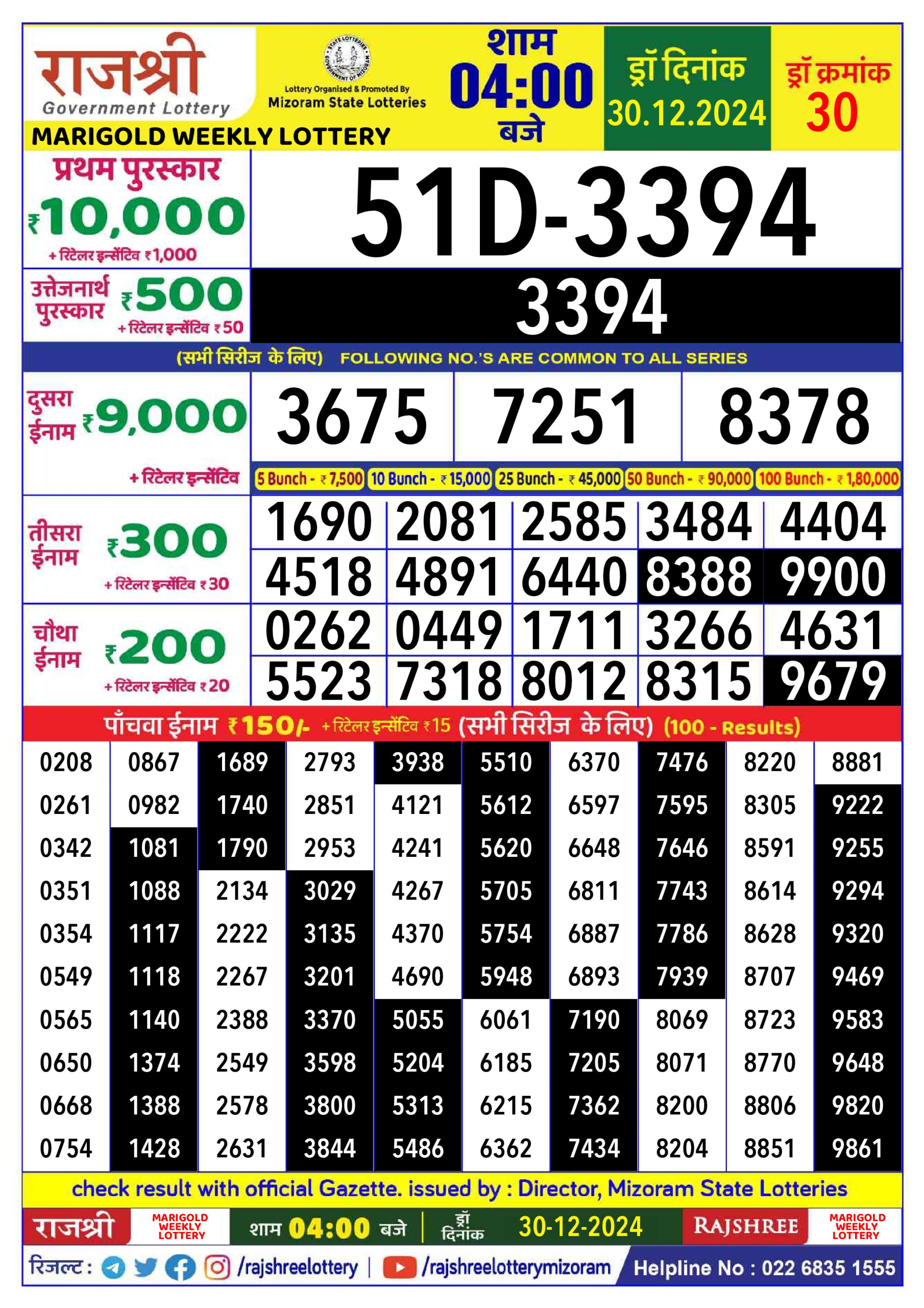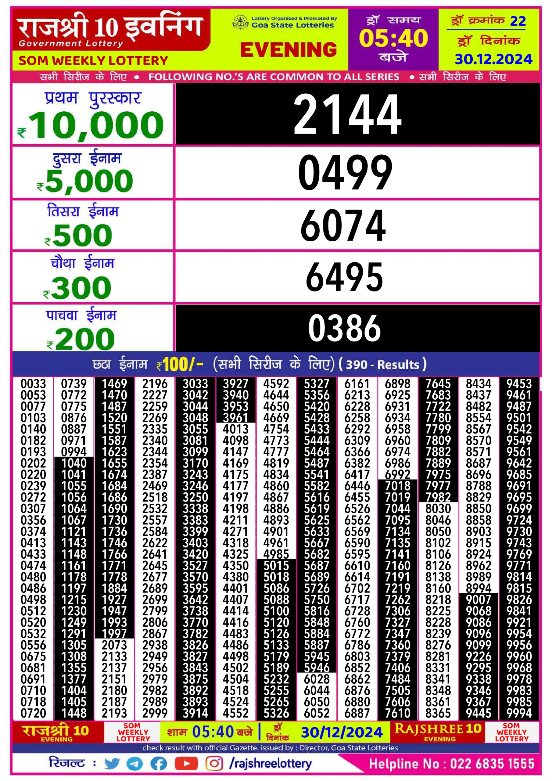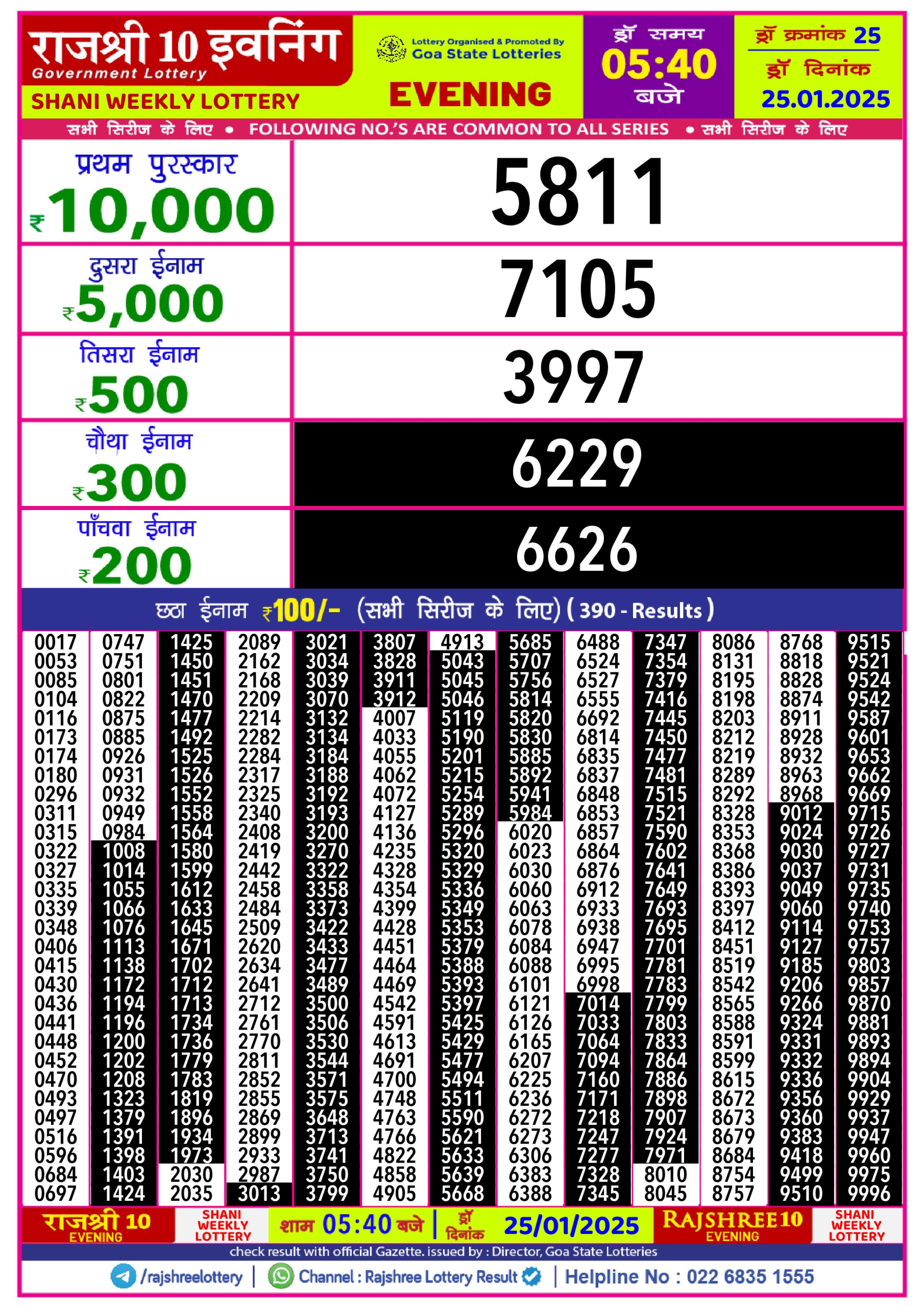 Rajshree 10 evening friday 5:40pm result 24.1.25