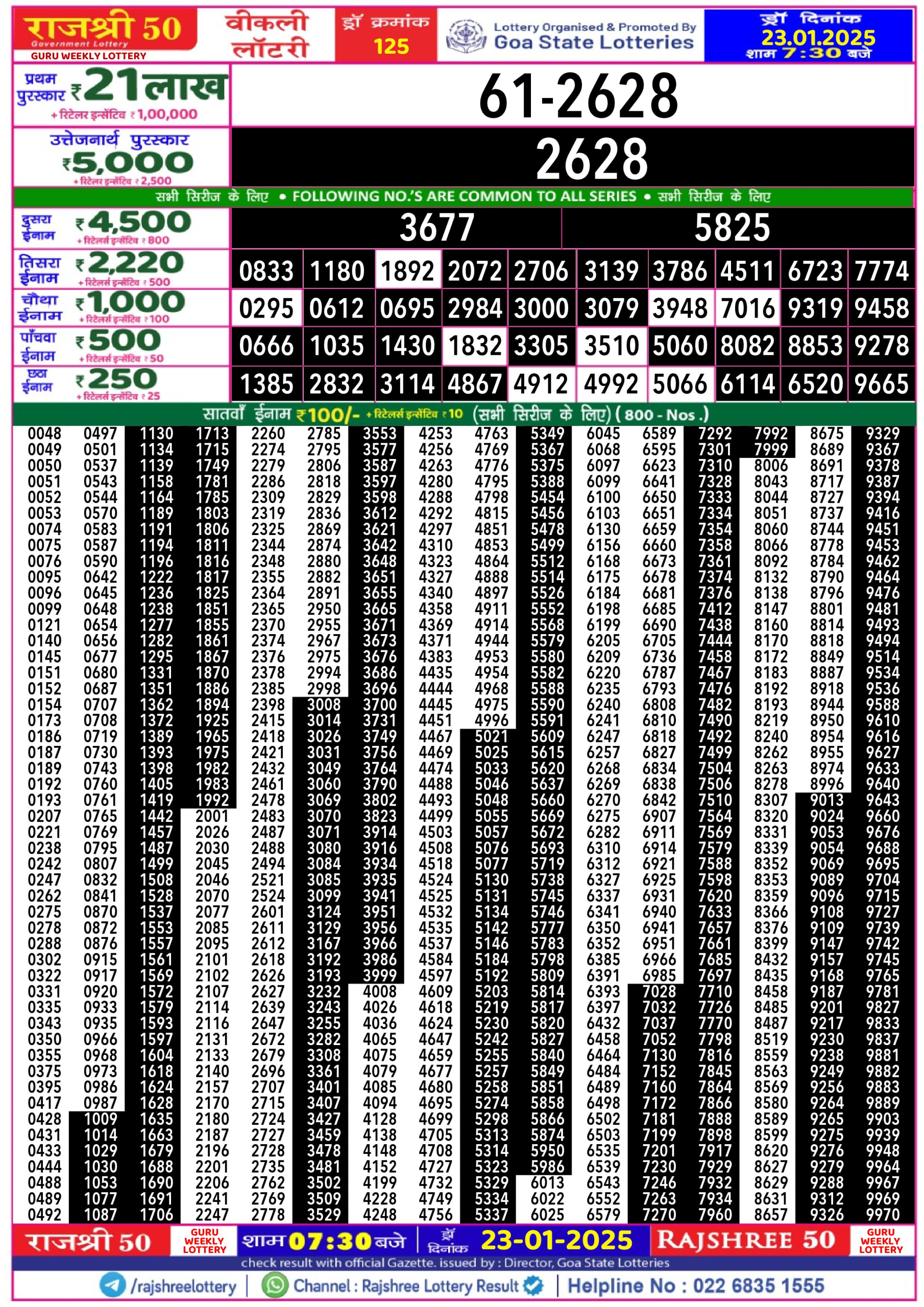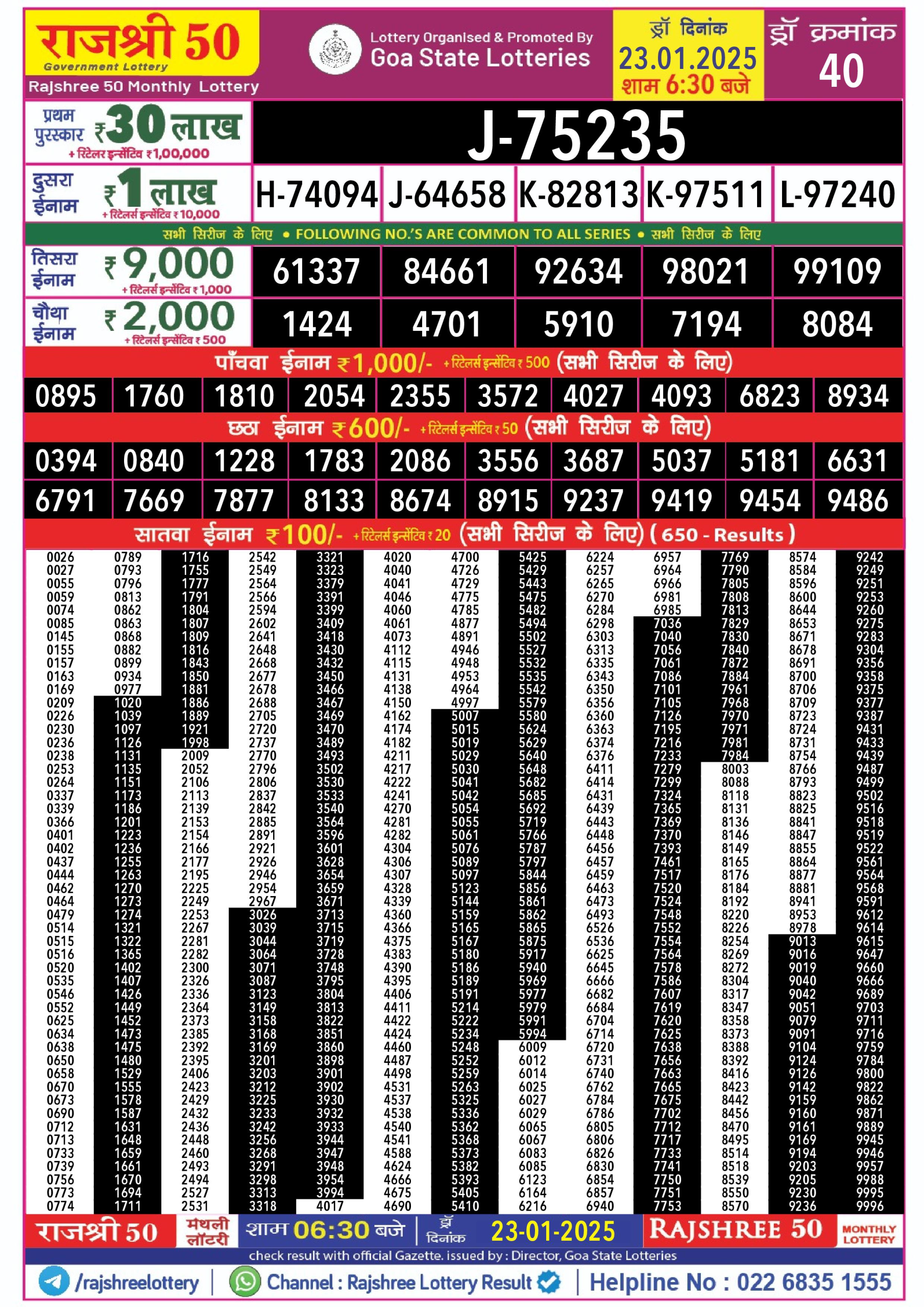 Rajshree 50 Lottery 7:30PM Result 23.1.25