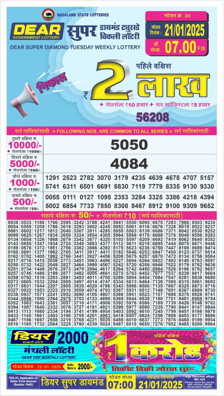 Rajshree 50 Lottery 7:30PM Result 21.1.25