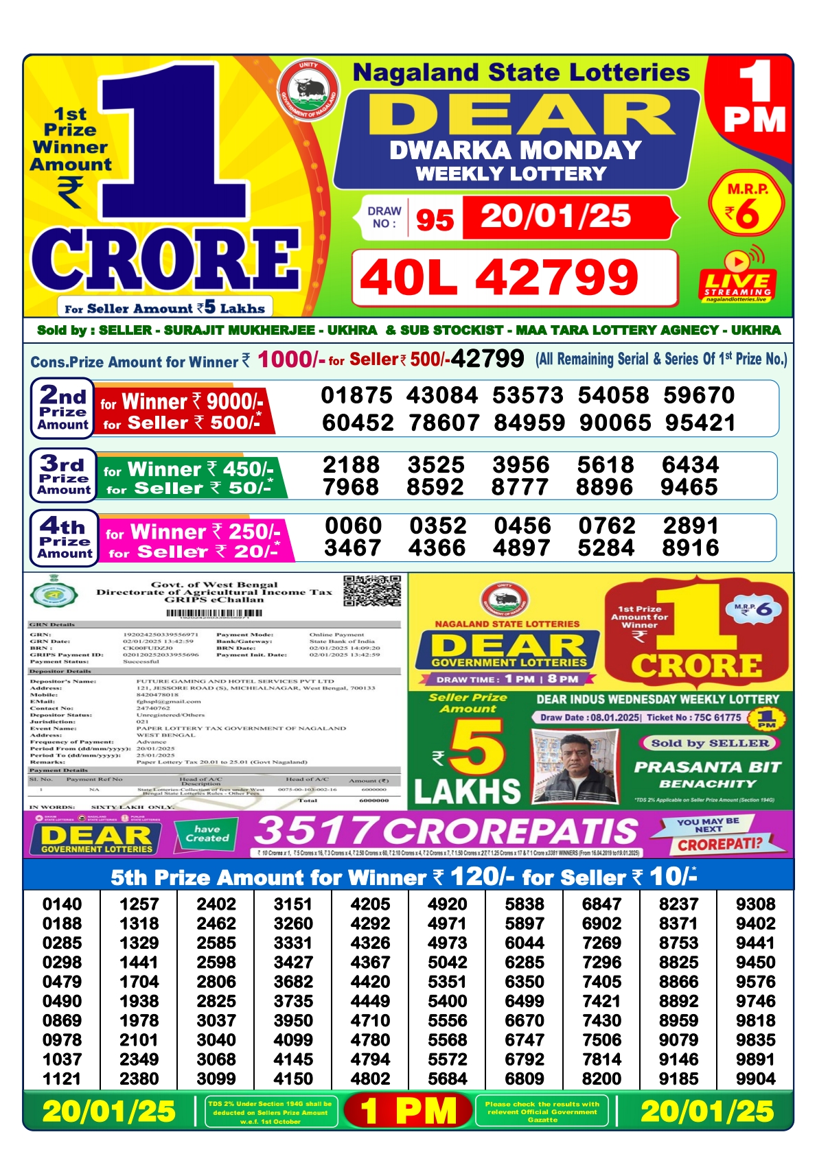 Dear blitzen monday weekly 6PM Result 20.1.25