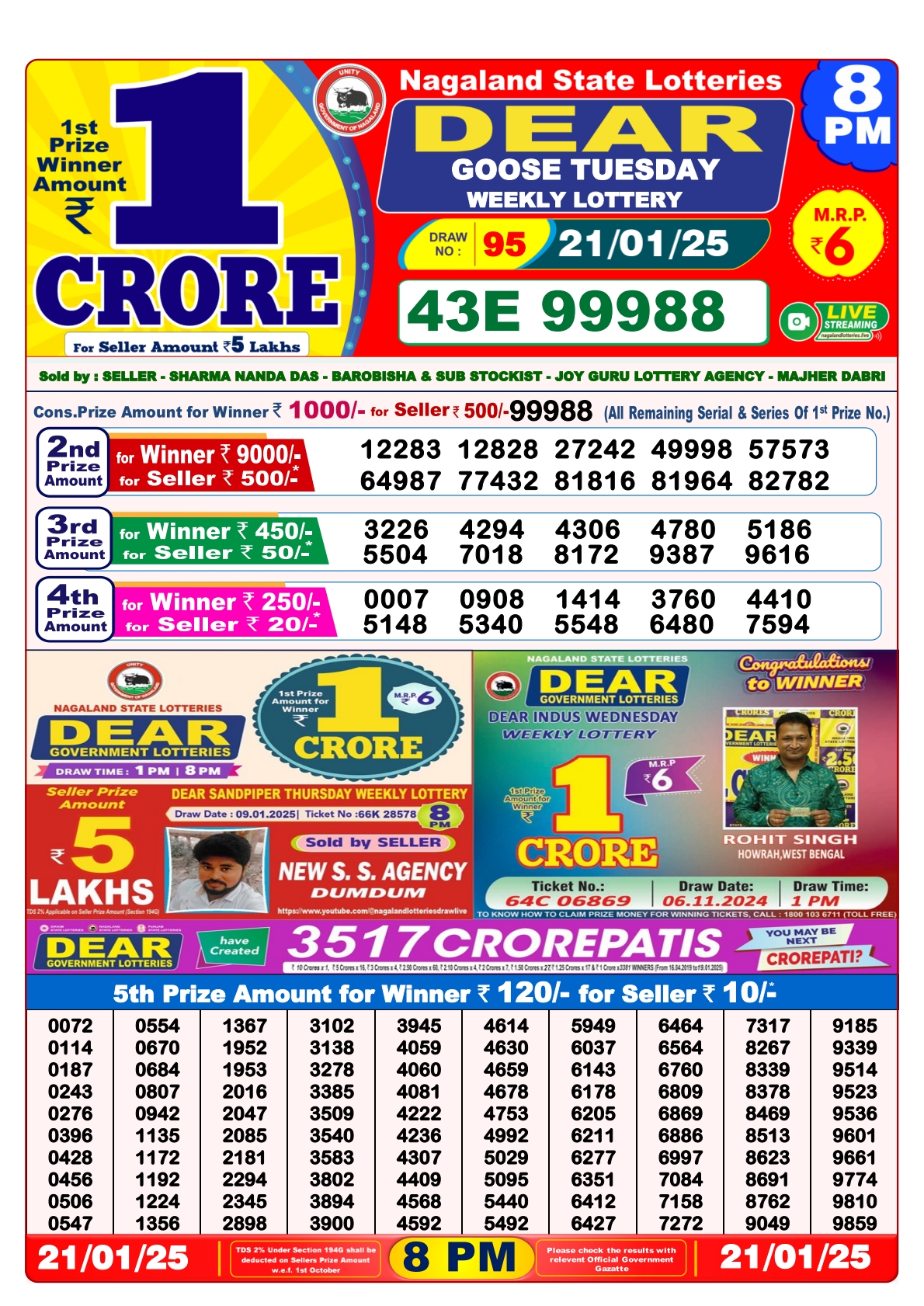 Dear comet tuesday weekly 6PM Result 21.1.25