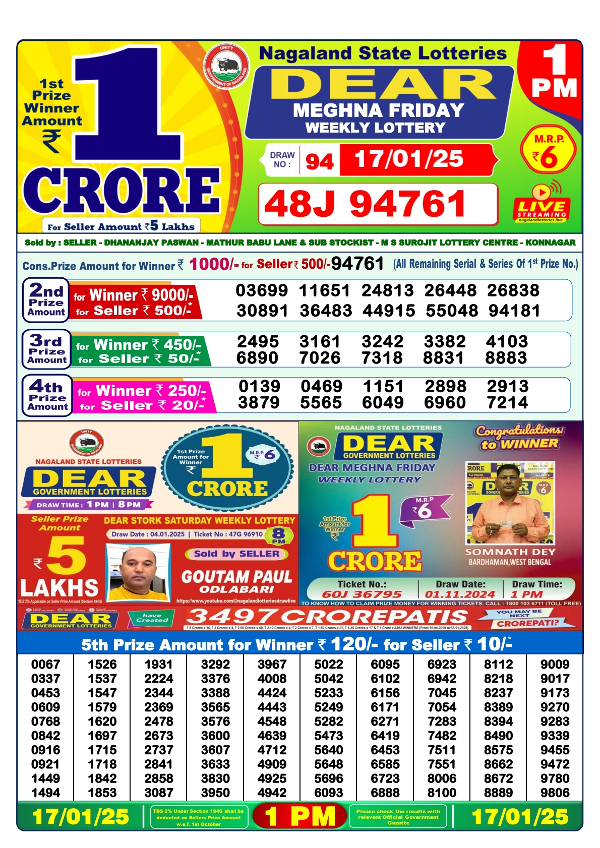 Punjab state dear 10 6pm lottery result 17.1.2025