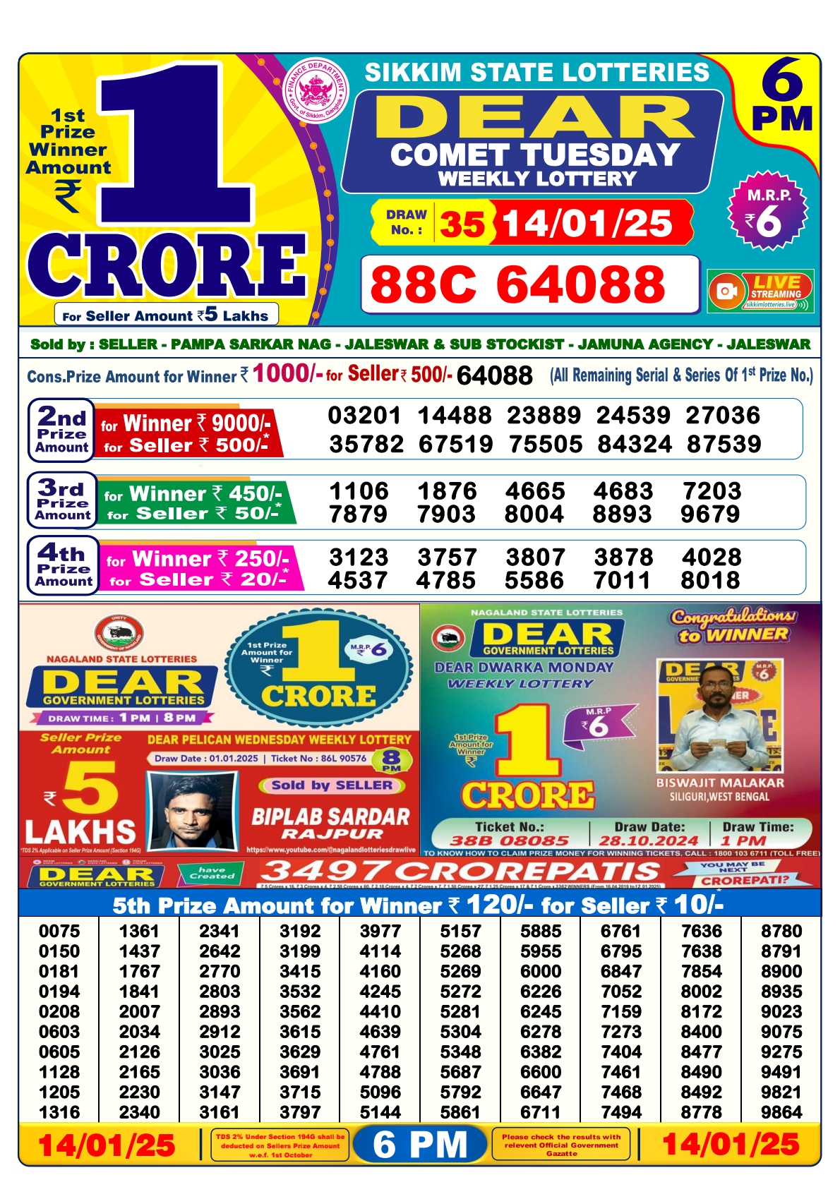 Dear comet tuesday weekly 6PM Result 14.1.25
