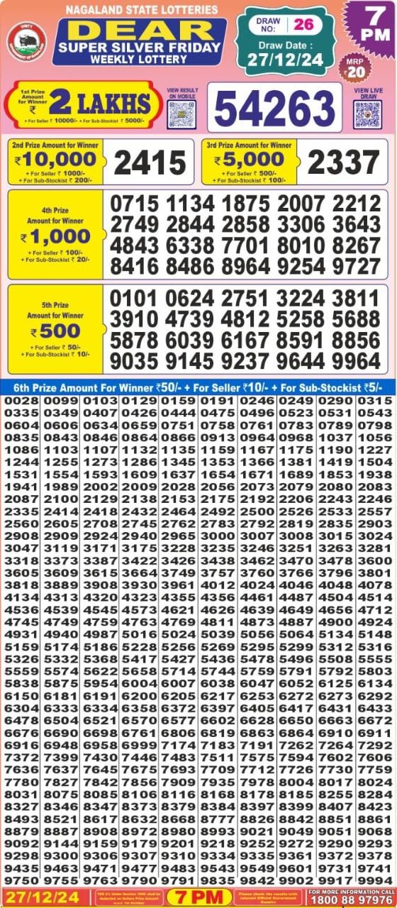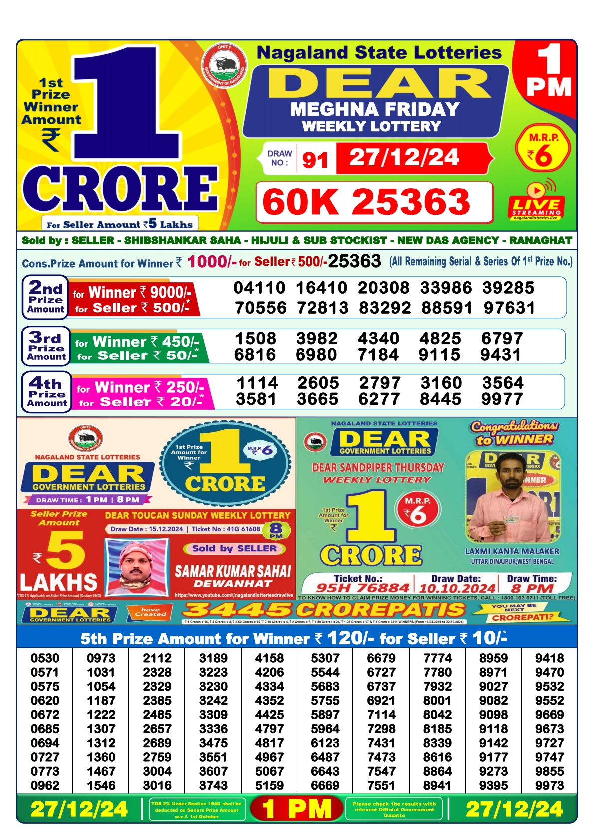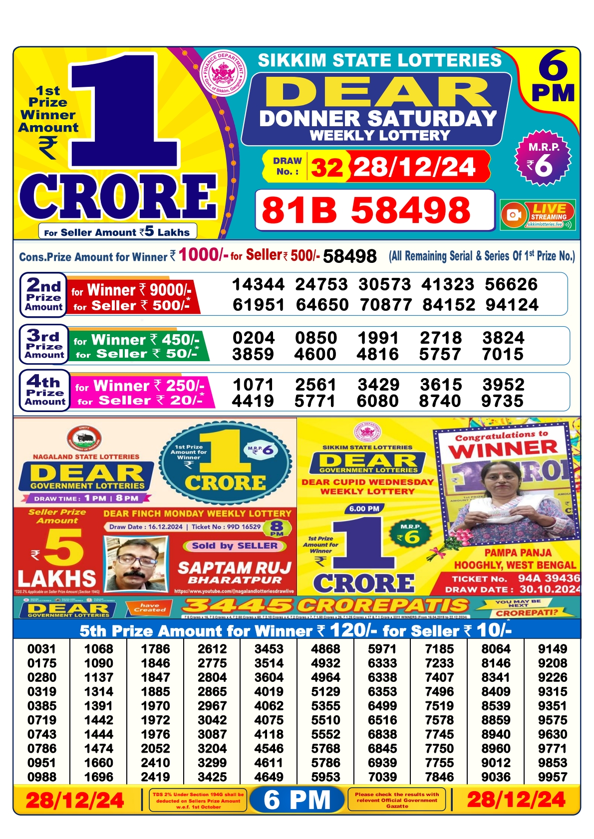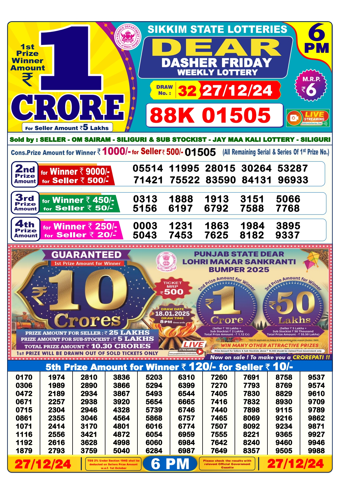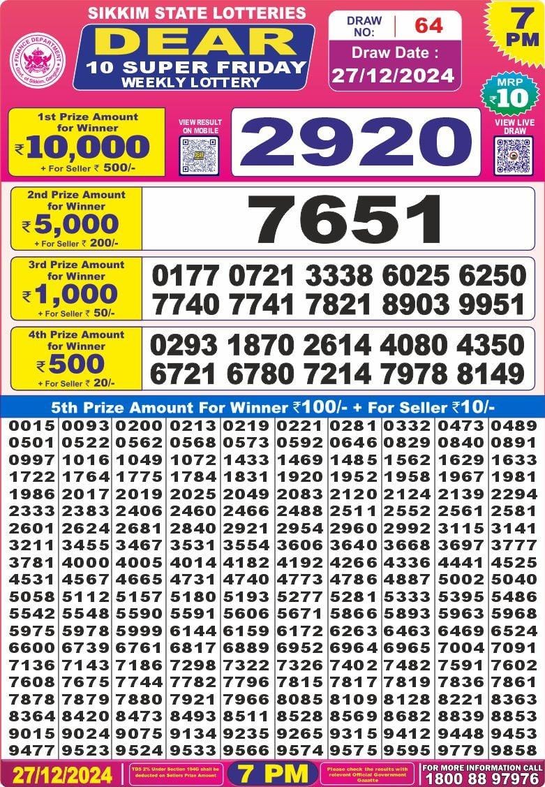 Dear dasher Friday weekly 6PM Result 27.12.24