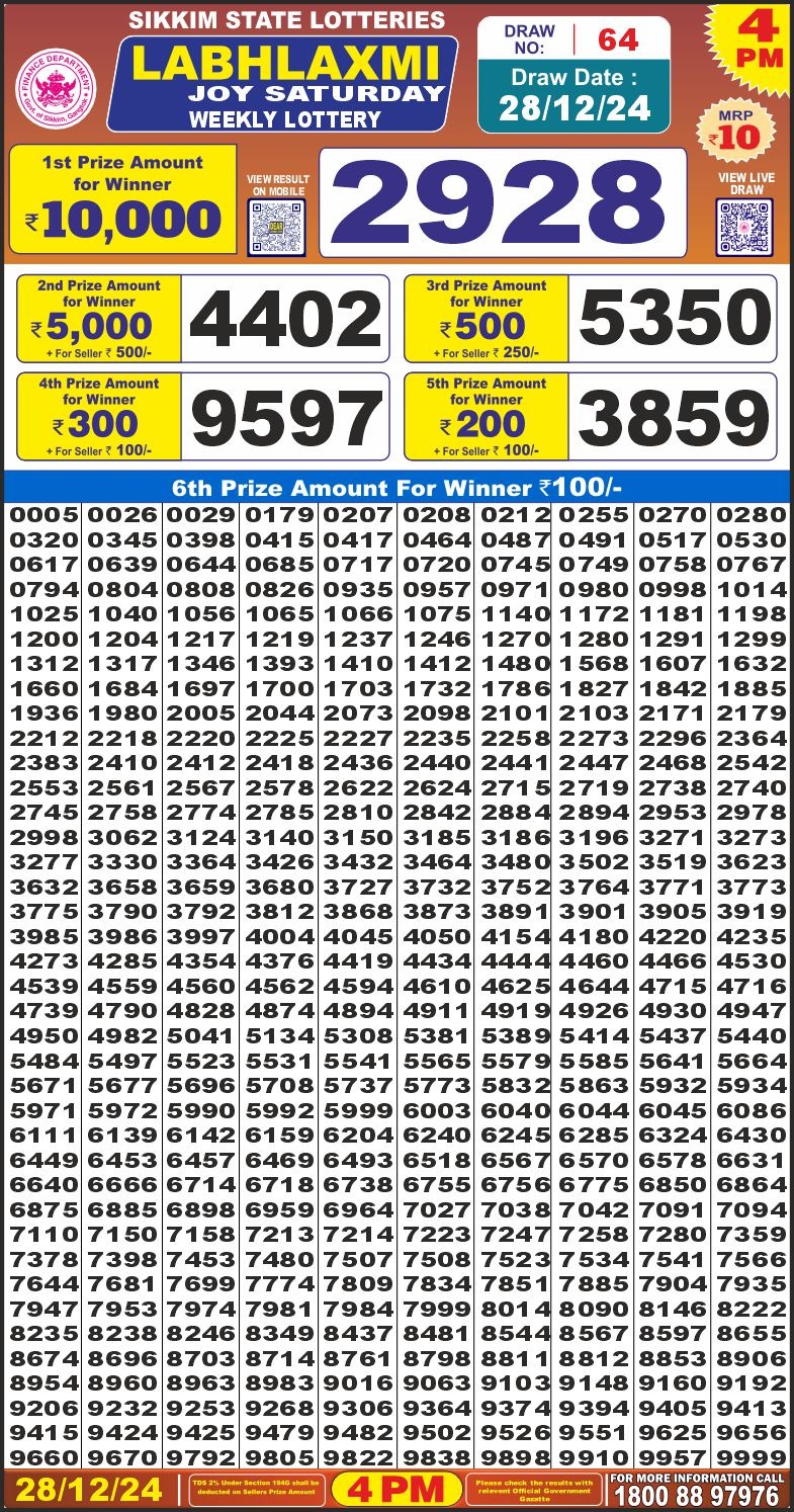 LabhLaxmi joy weekly 4PM Result 28.12.24