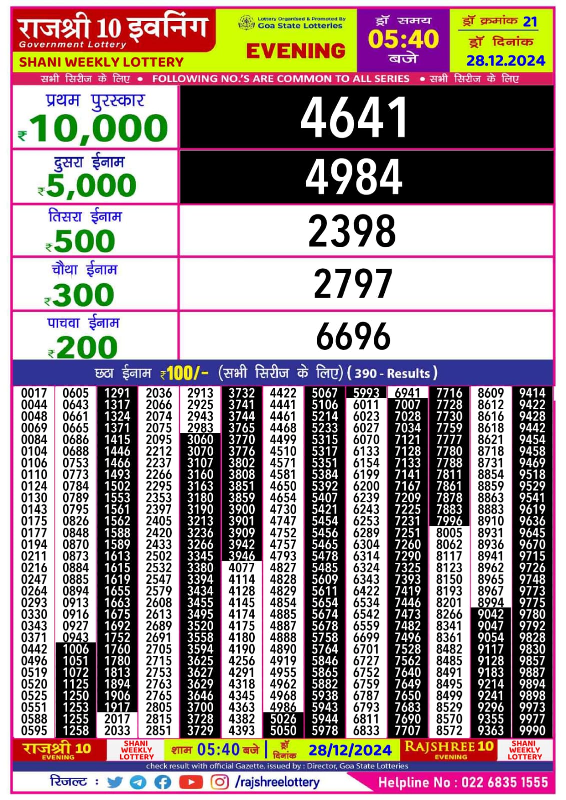 Rajshree 10 evening Saturday 5:40pm result 28.12.24