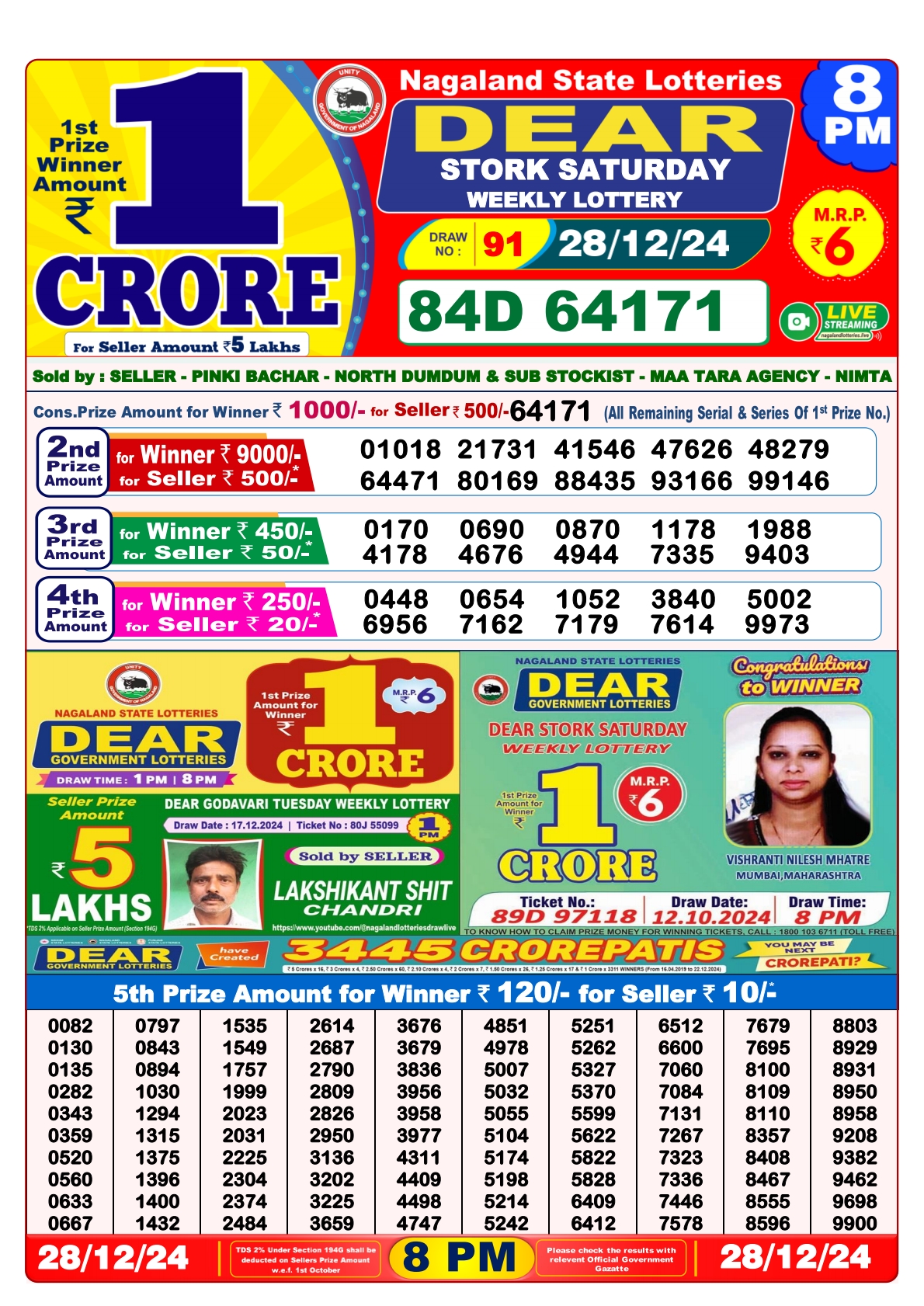 Dear stork Weekly Lottery 8PM Result 28.12.24