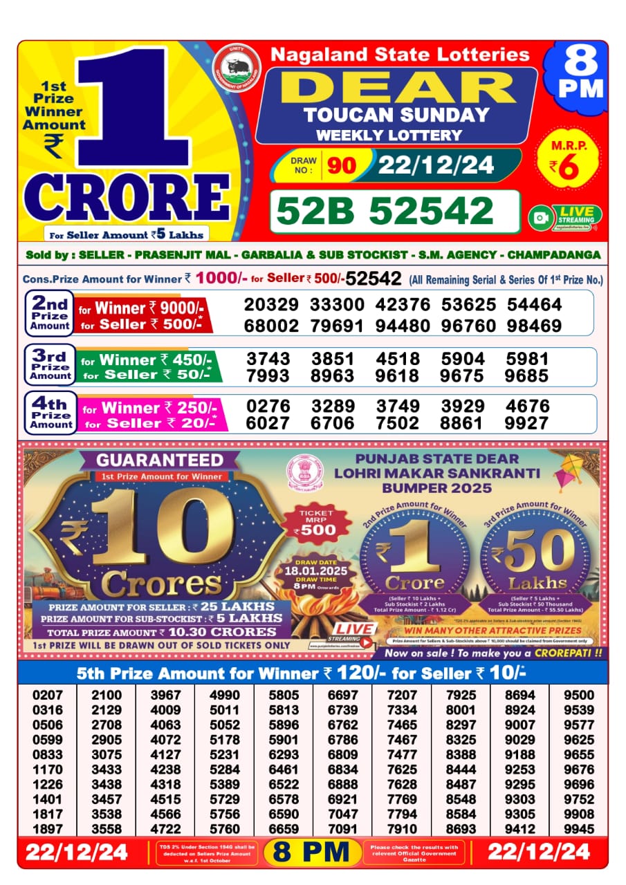 Dear comet tuesday weekly 6PM Result 24.12.24
