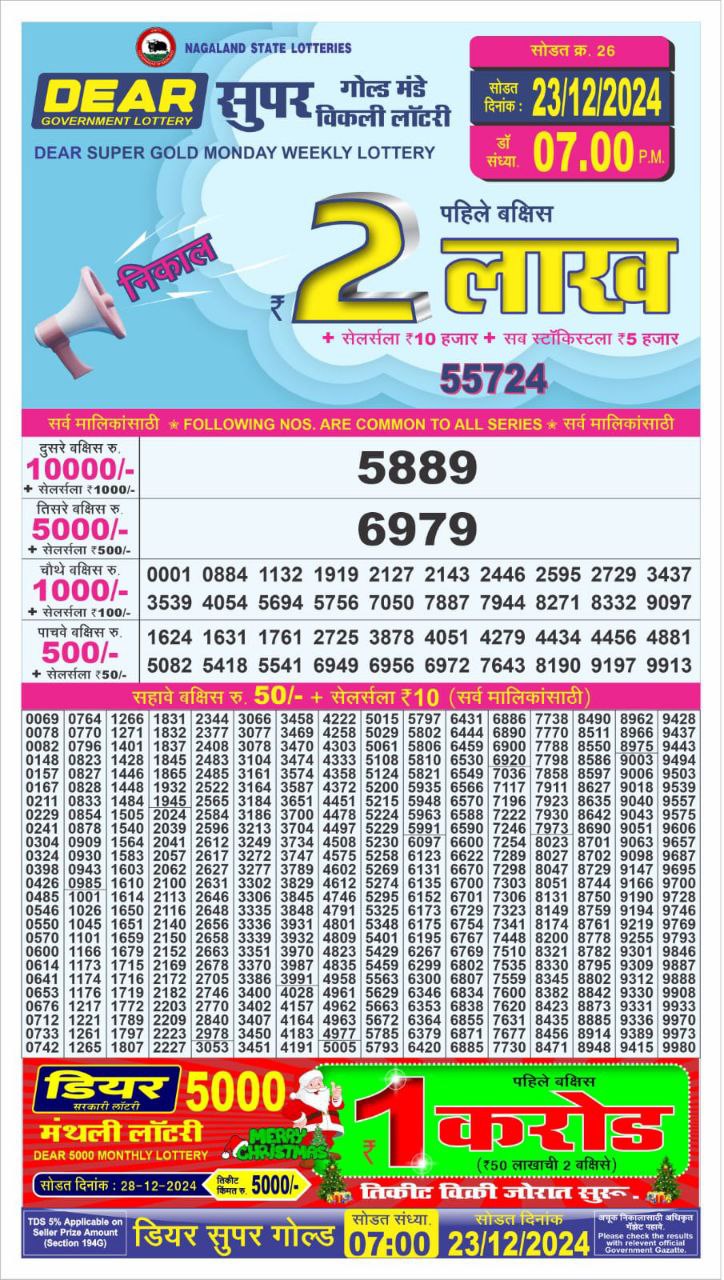 Dear 50 jhelum monday Lottery 5pm Result  23.12.24