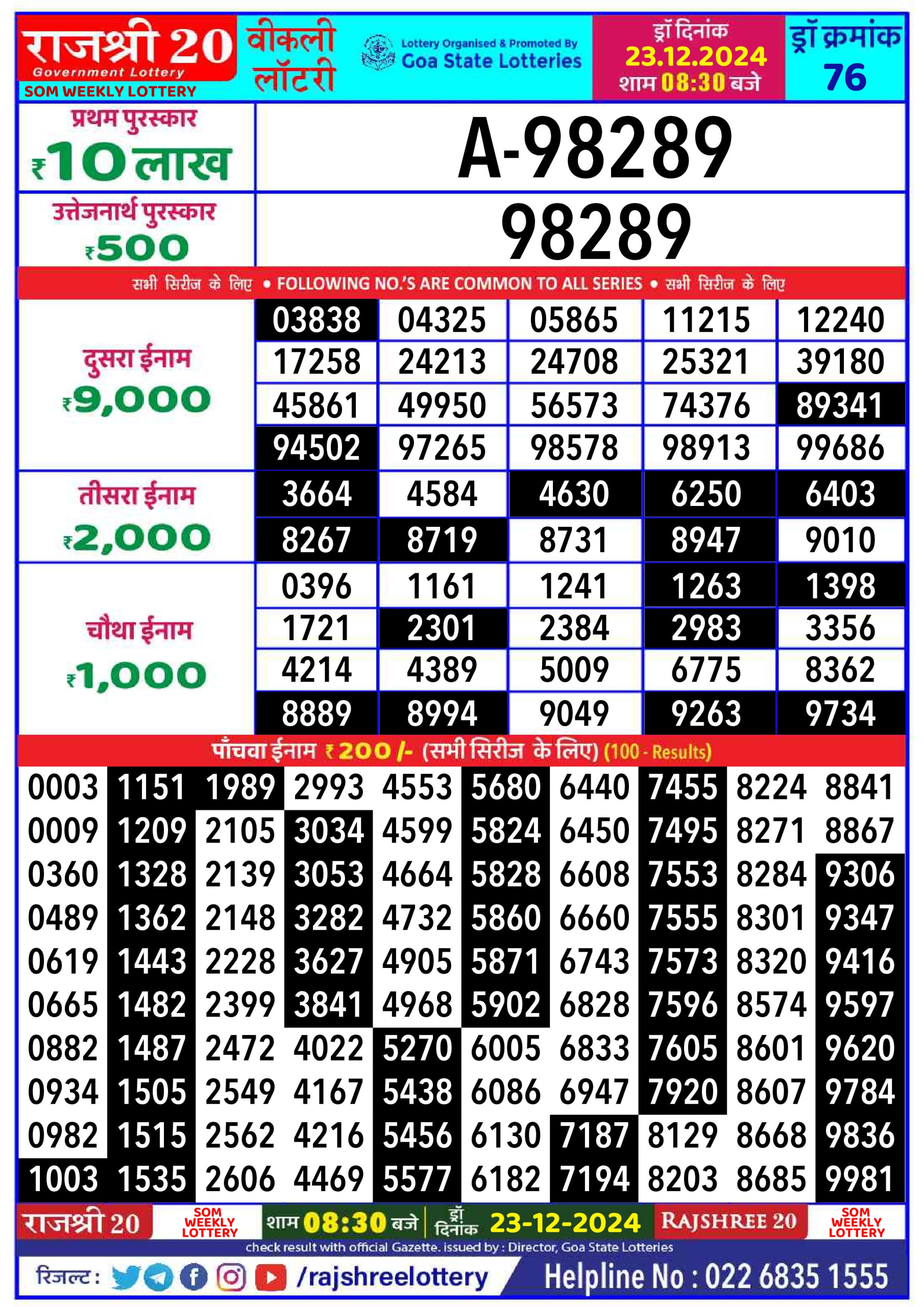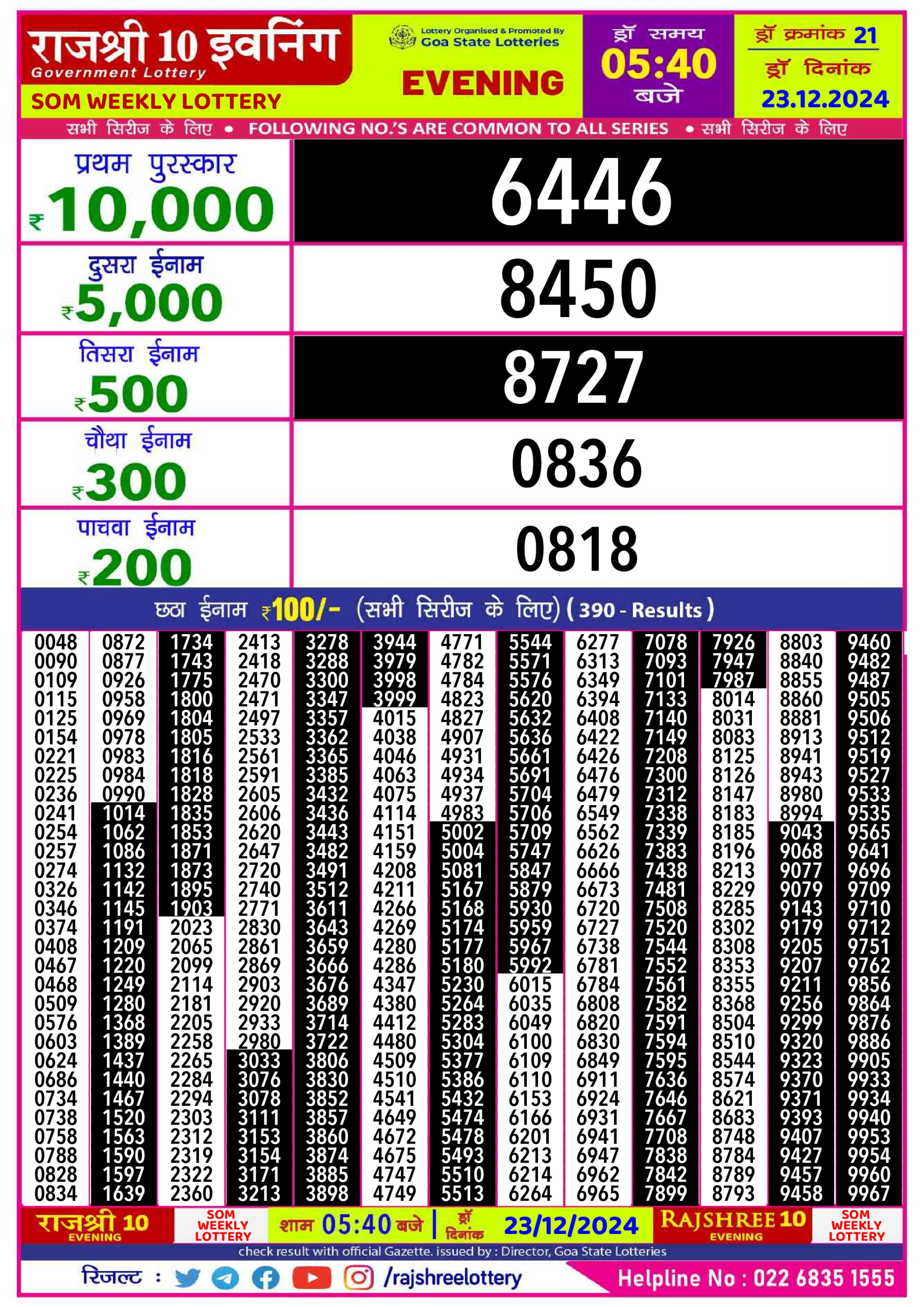 Rajshree 10 evening monday 5:40pm result 23.12.24