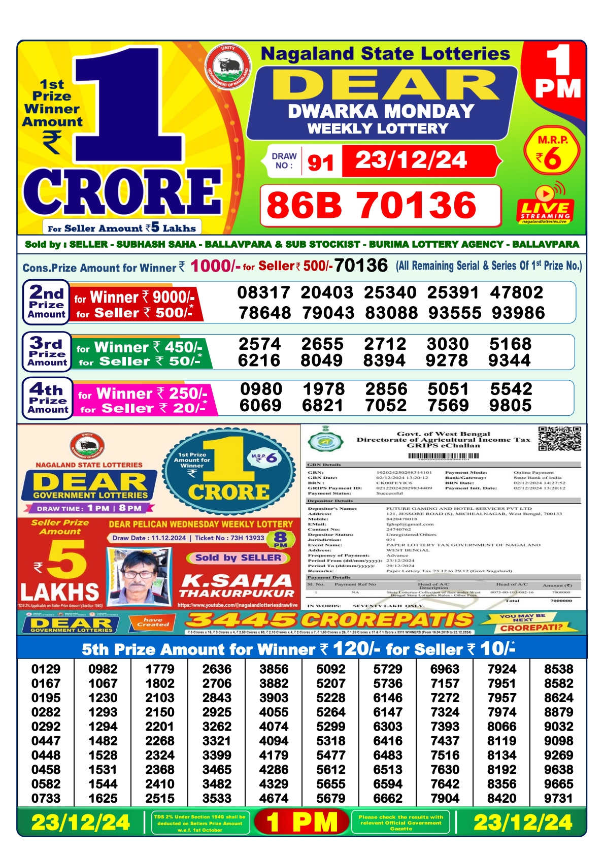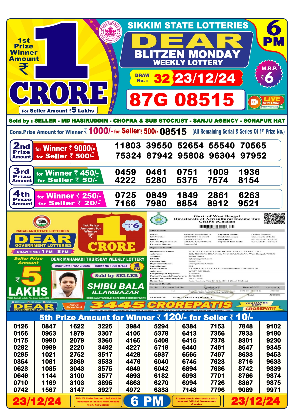 Dear blitzen monday weekly 6PM Result 23.12.24