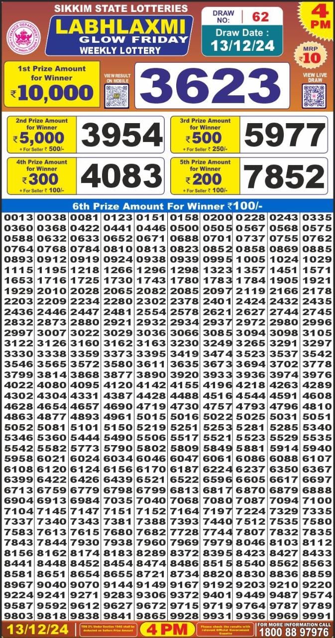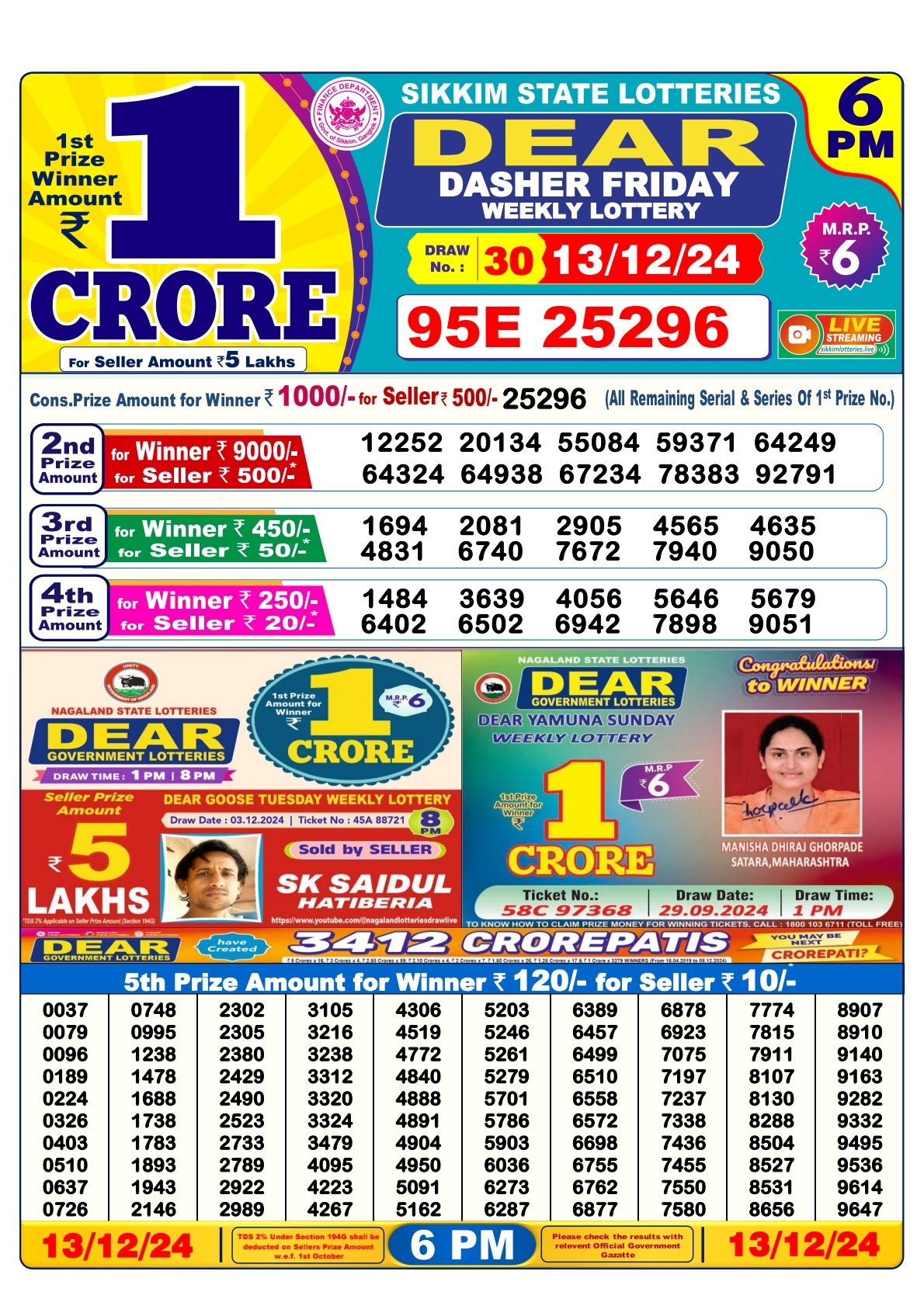 Dear dasher Friday weekly 6PM Result 13.12.24