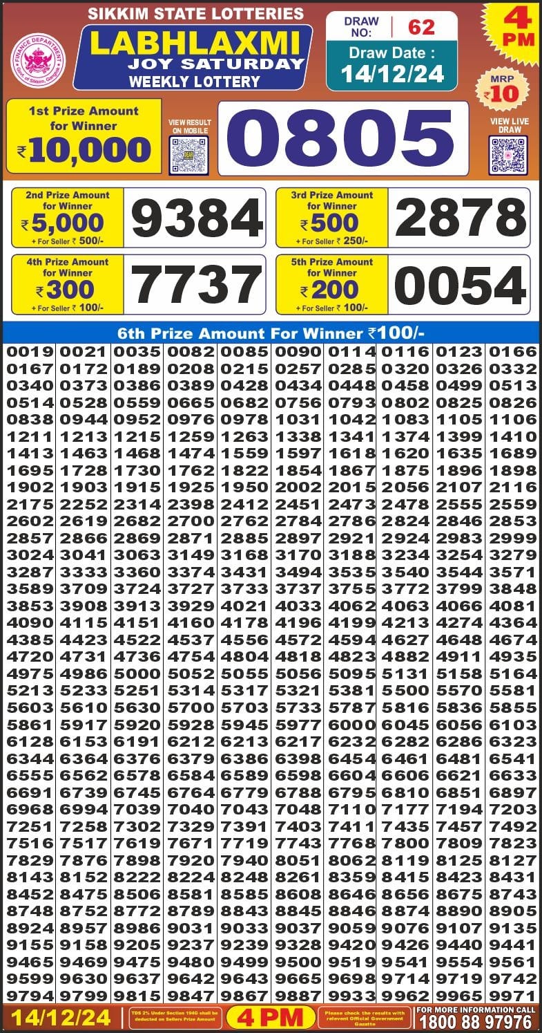 LabhLaxmi joy weekly 4PM Result 14.12.24