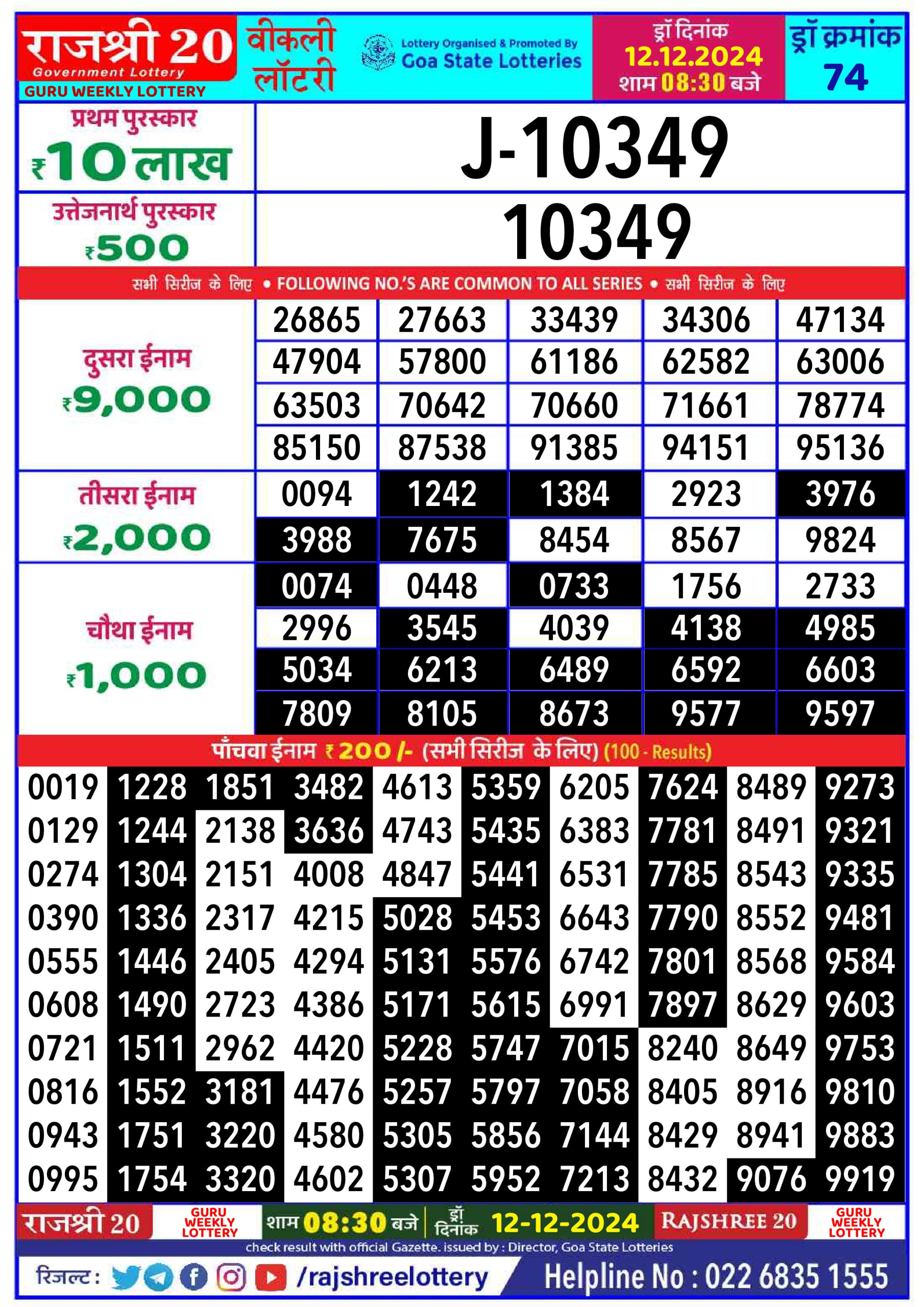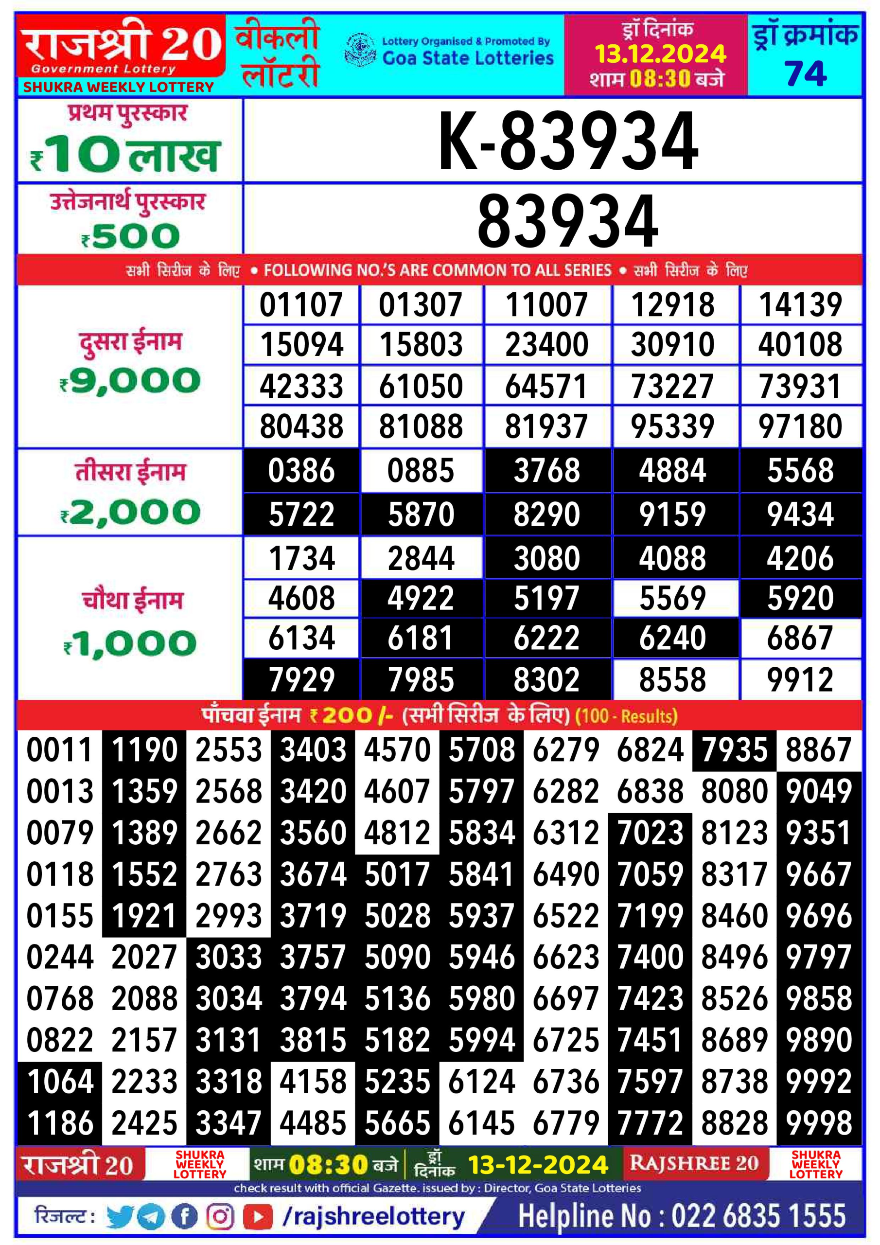 Rajshree 10 evening friday 5:40pm result 13.12.24
