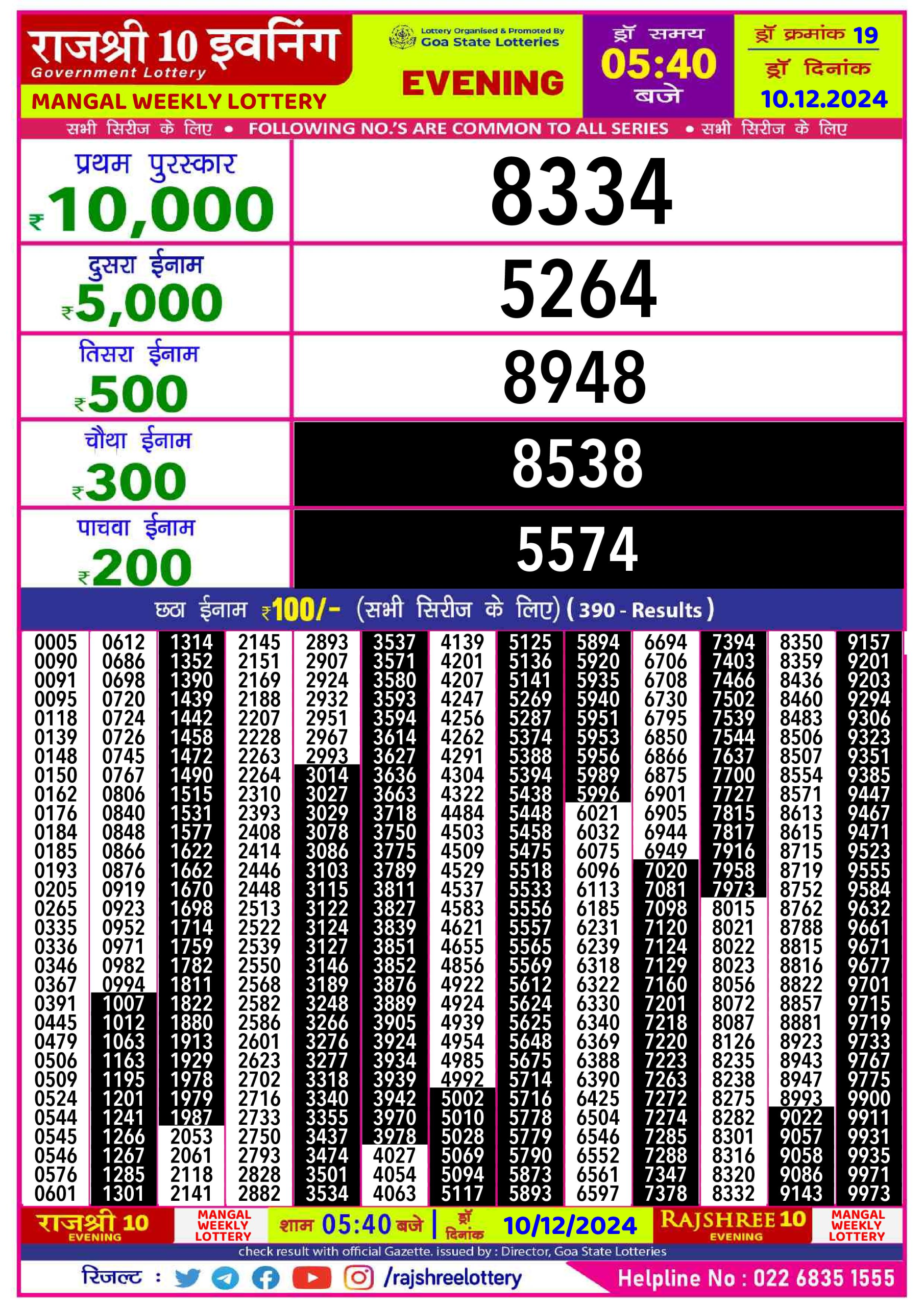 Rajshree 10 evening tuesday 5:40pm result 10.12.24