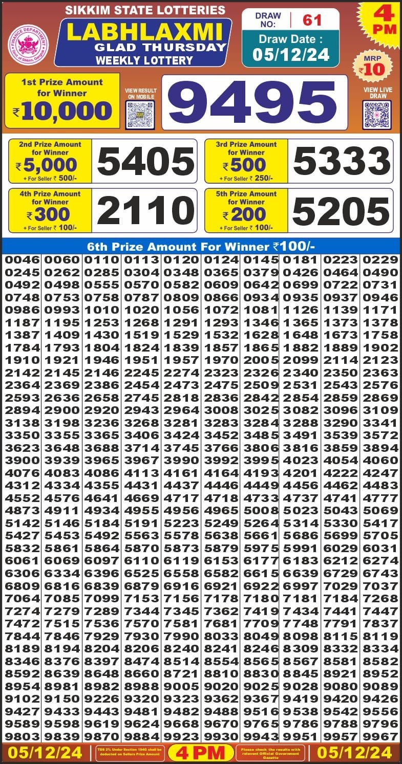Golden Star weekly Lottery result 5.12.24