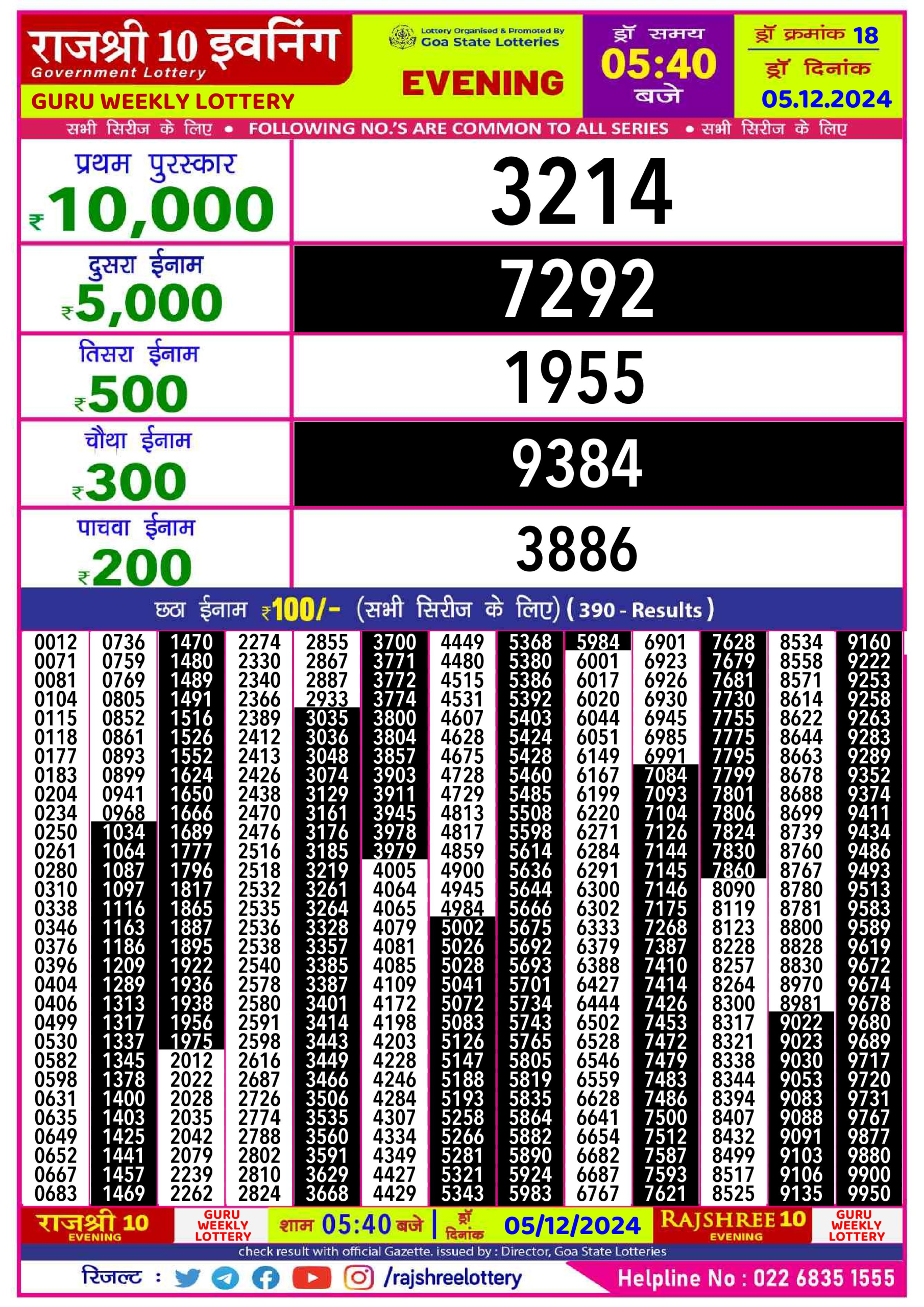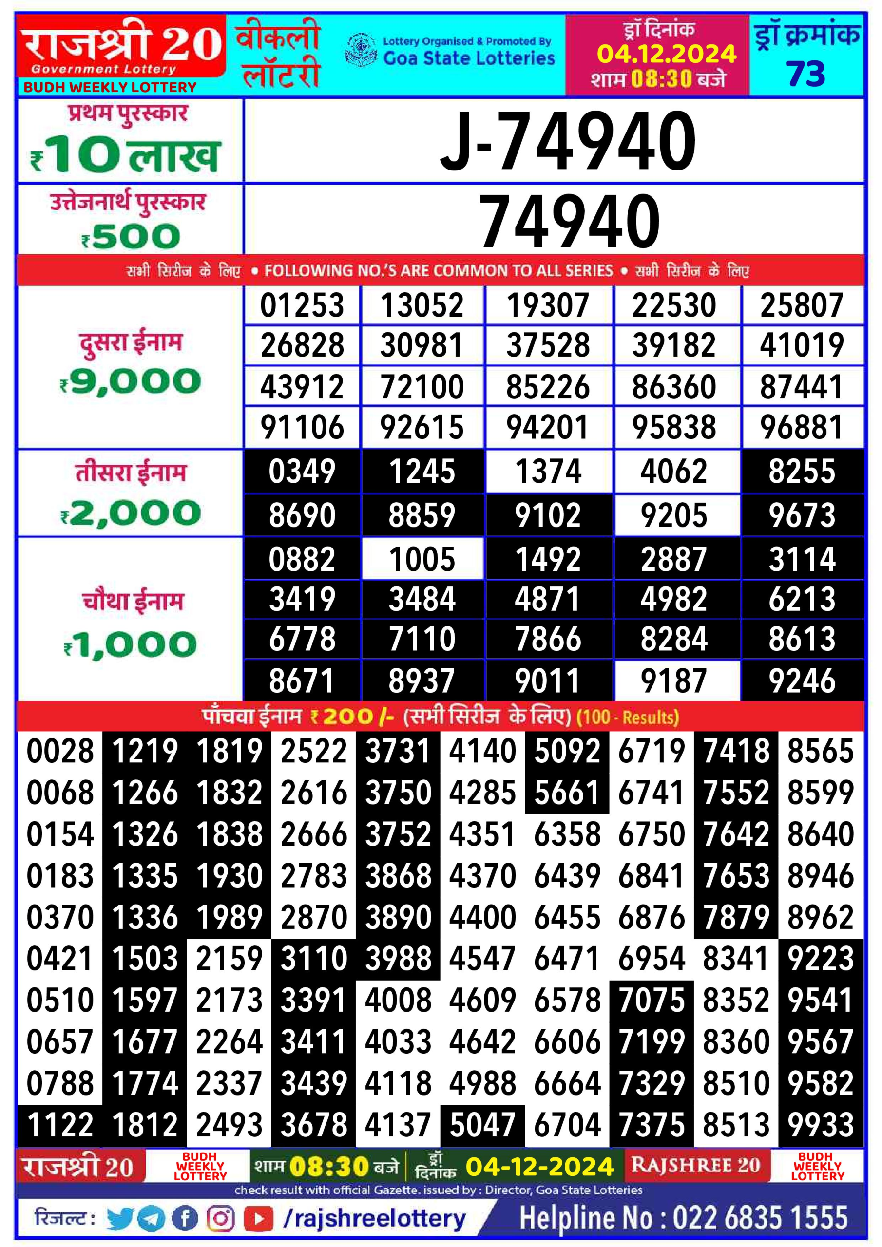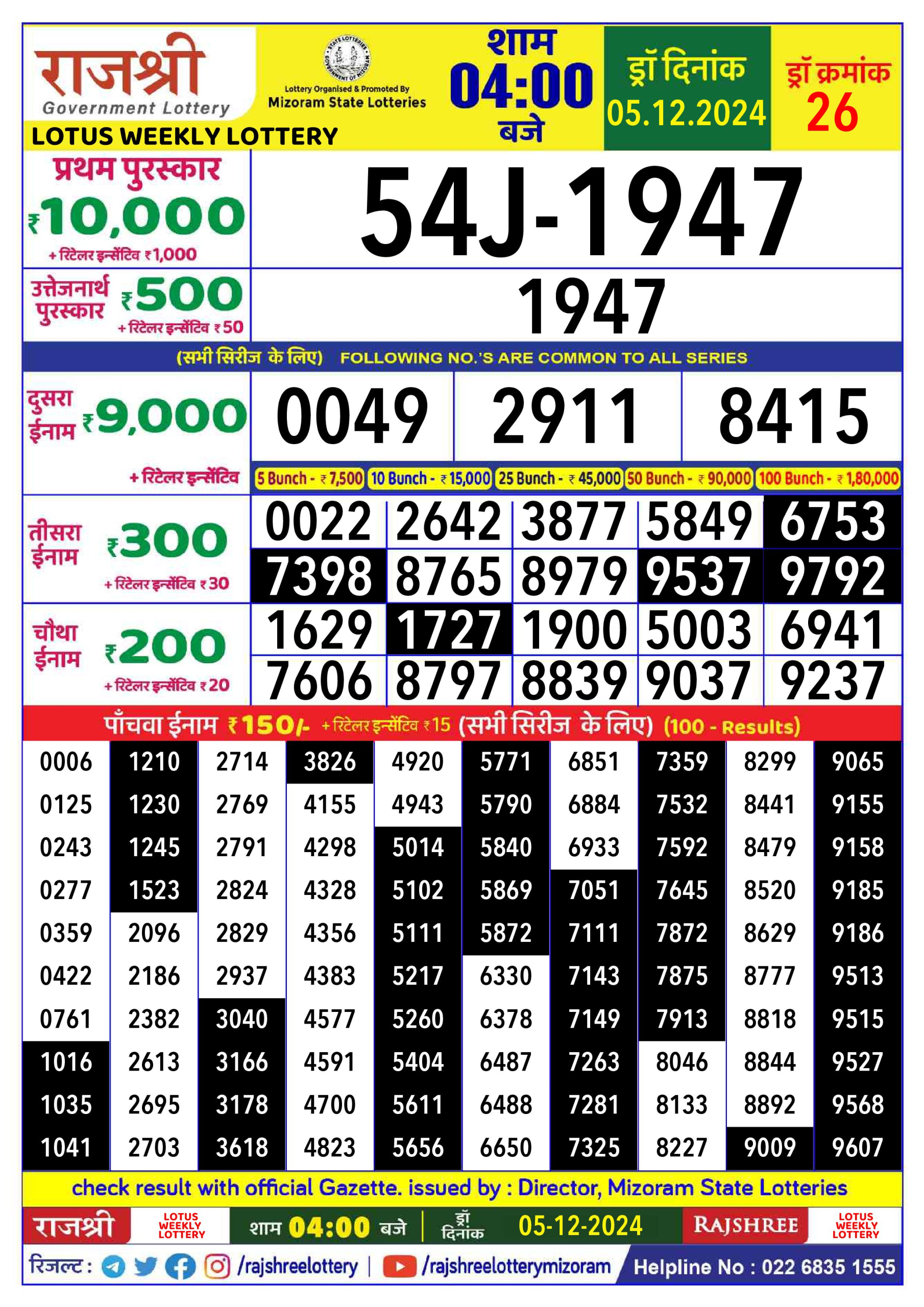 Rajshree 100 Monthly Lottery Result 6:30PM 5.12.2024
