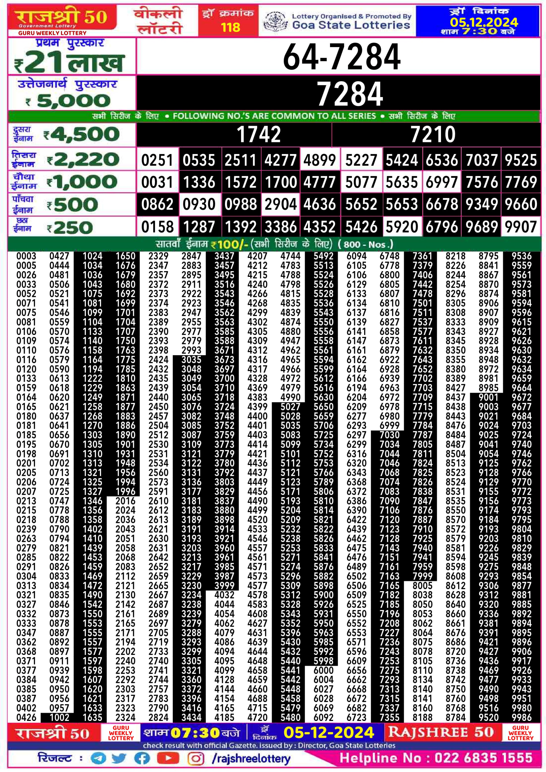 Rajshree 50 Lottery 7:30PM Result 5.12.24