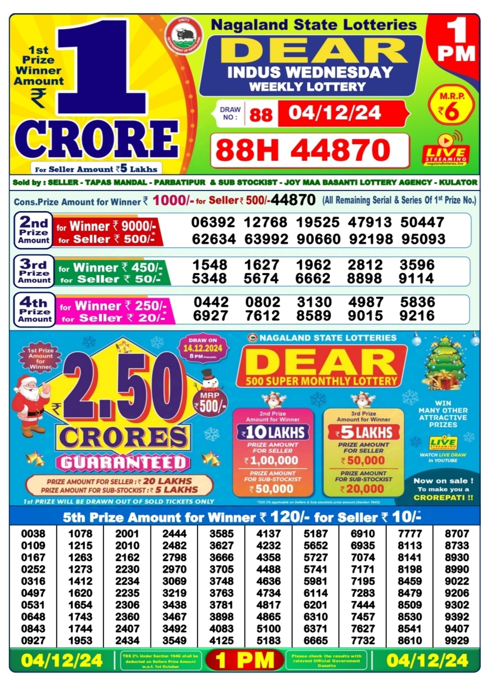 Dear Indus Wednesday Weekly 1PM Result 4.12.24