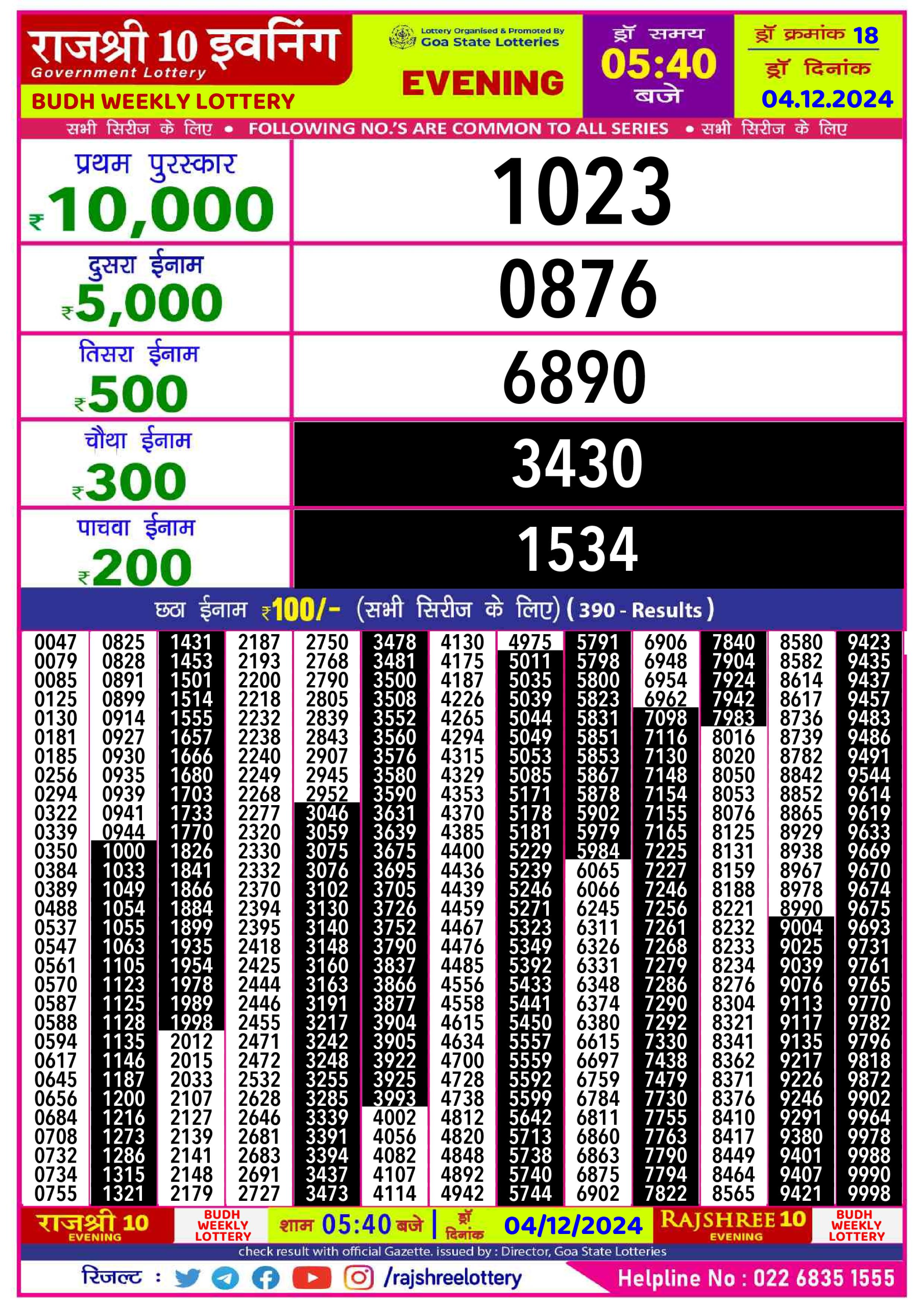 Rajshree 10 evening Wednesday 5:40pm result 4.12.24
