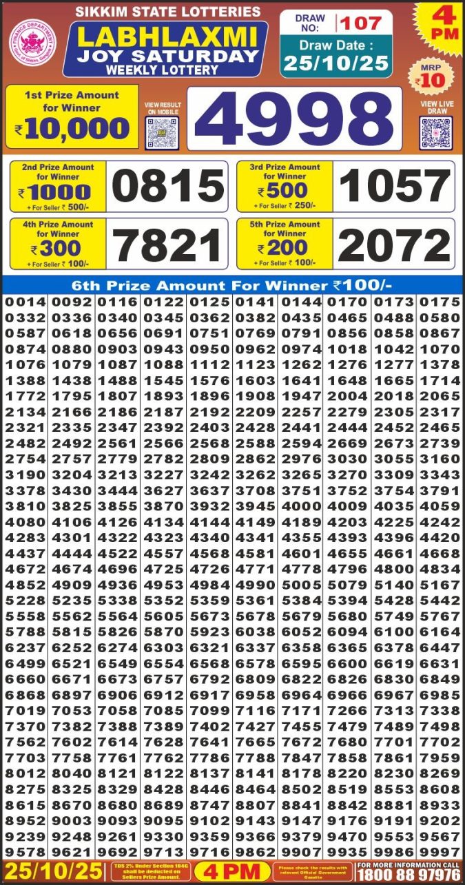 Labh Laxmi Joy Weekly 4pm Result 25.10.2025