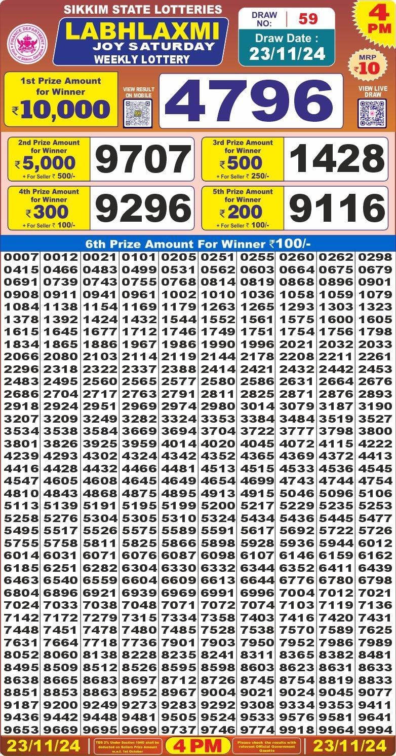 LabhLaxmi joy weekly 4PM Result 23.11.24